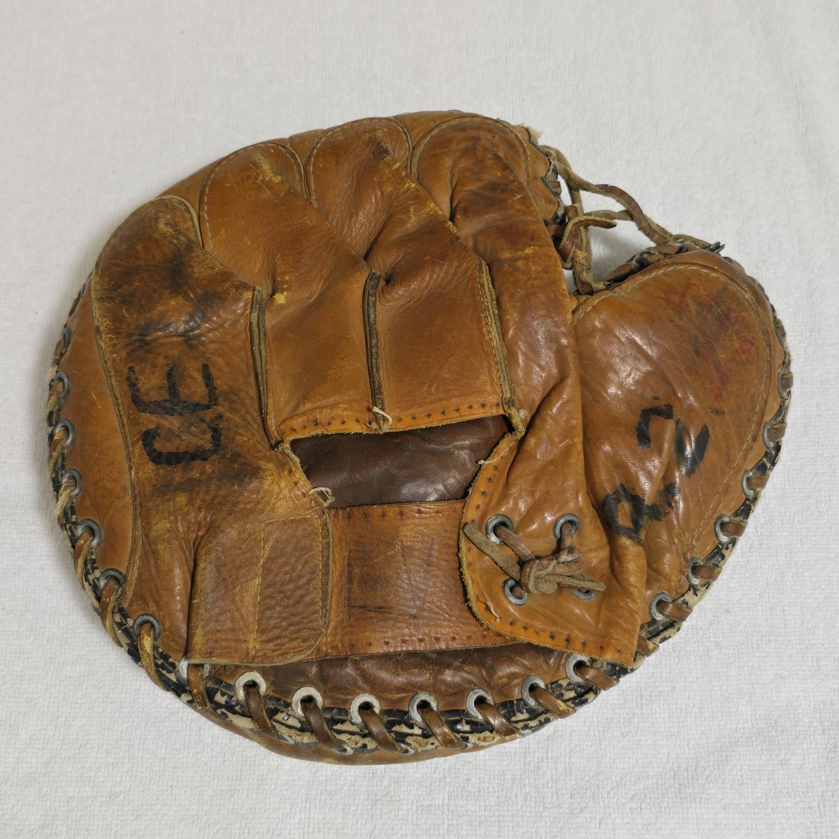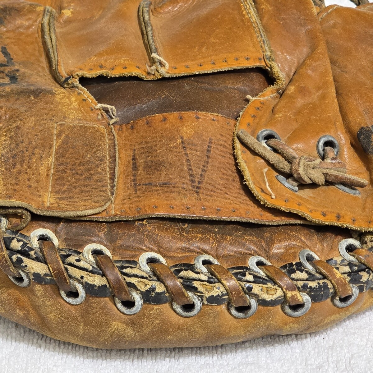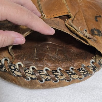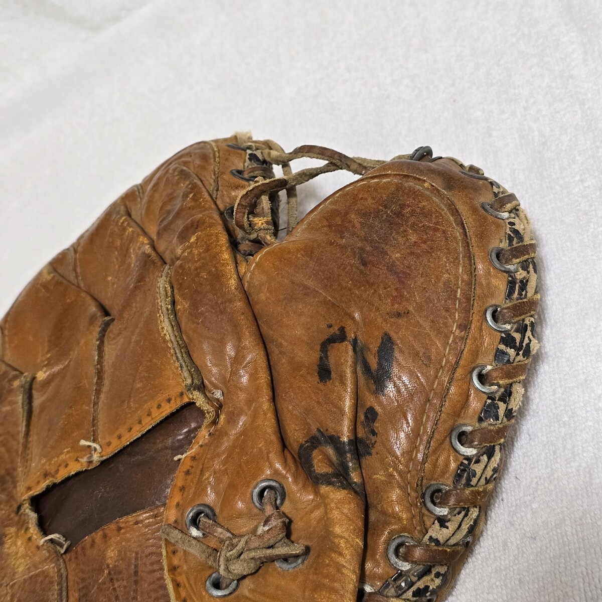 ***The glove is well used and has names written in ink mostly on the top side, and the grommets for the lacing have some corrosion. Supple leather / soft padding / comfortable fit! Please See Photos!***