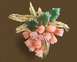- VINTAGE GOLDTONE GENUINE CORAL & JADE FLOWER BOUQUET PIN BROOCH