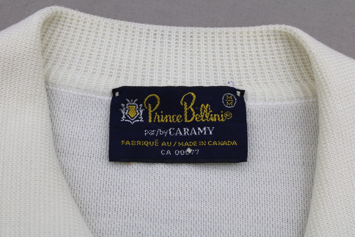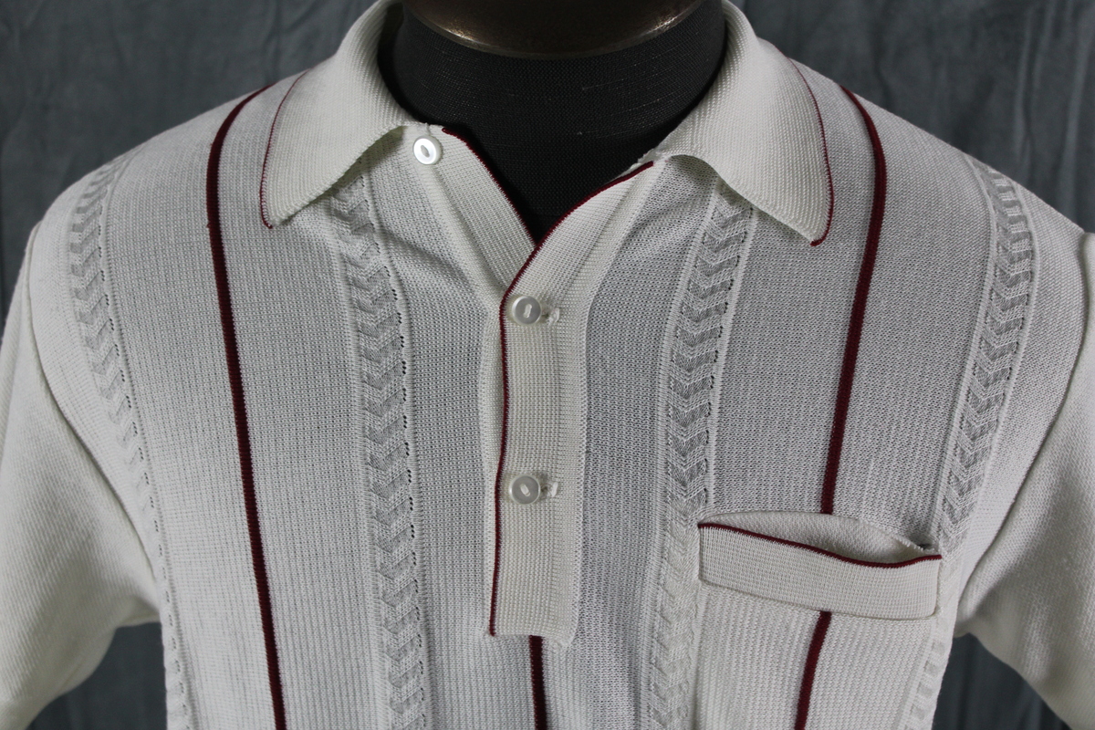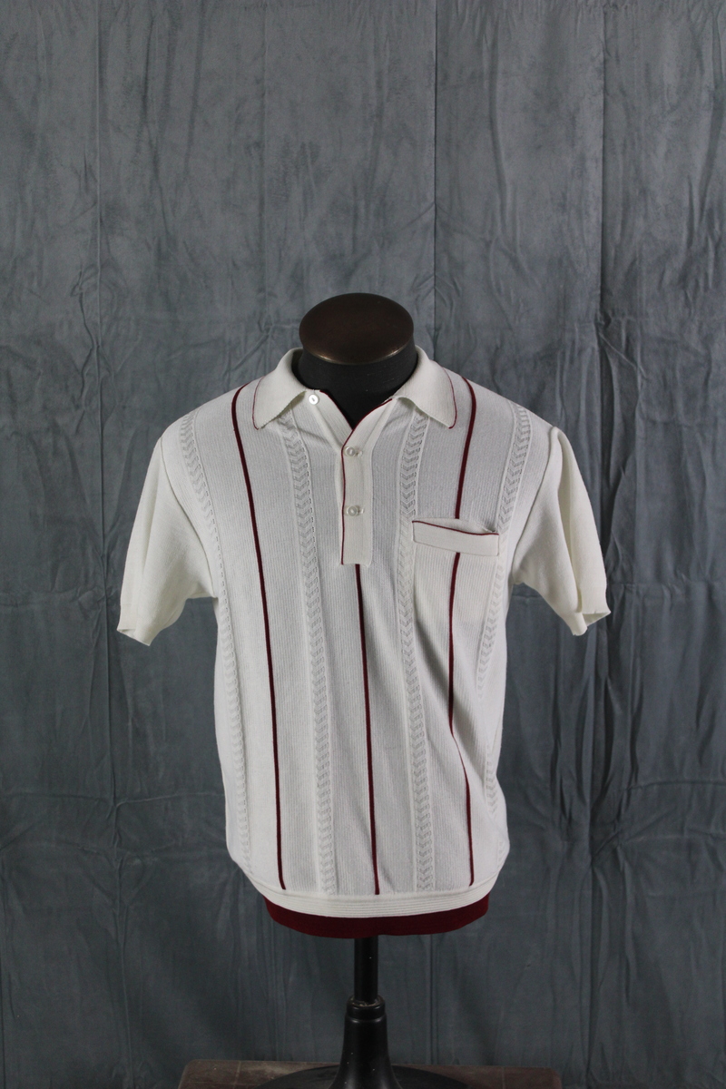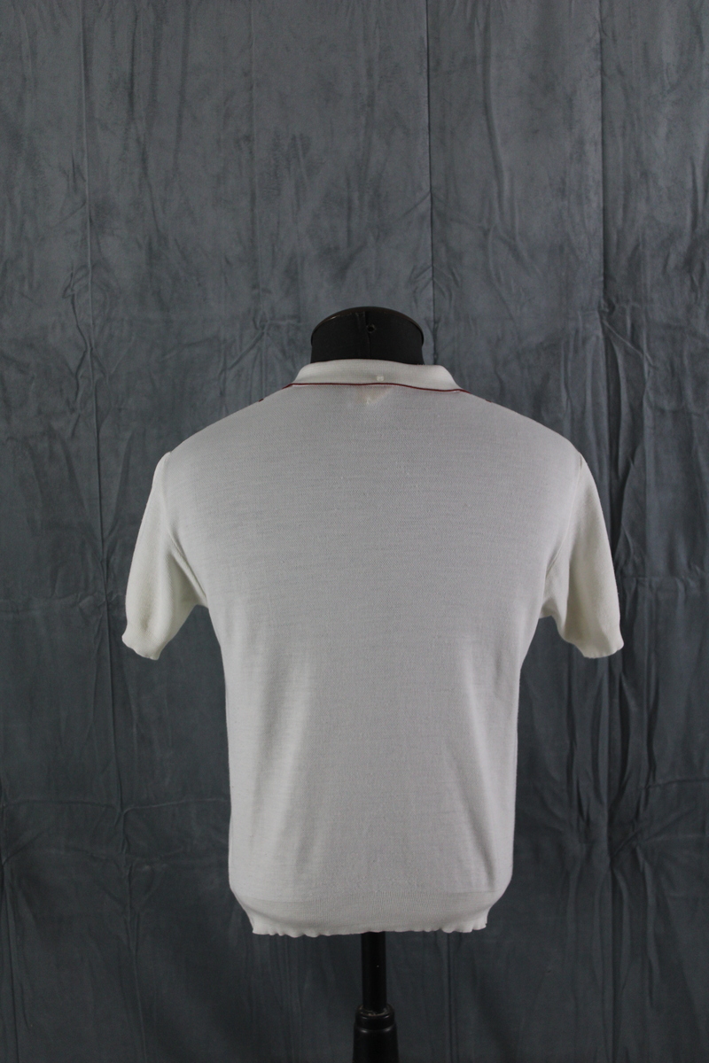 Up for sale is a vintage golf shirt. It has white textured body with red stripes on the sides of the front of the shirt. What a great vitnage shirt do not miss out on it.