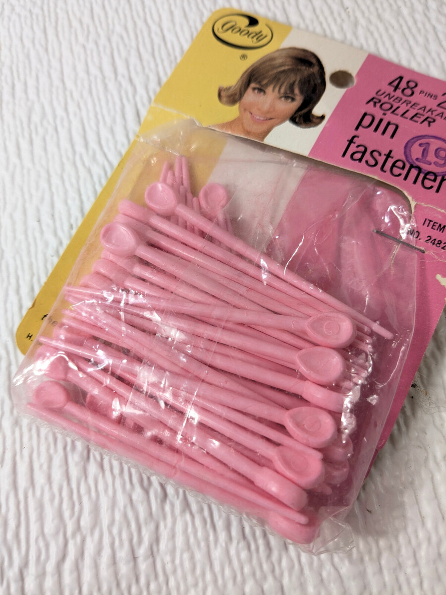 - Vintage Goody Hair Roller Pins Pics Fasteners 48 Piece Pink Plastic unbreakable