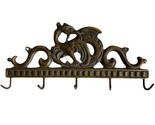 This decorative wall hook system features an elegant scrollwork design with a central mythical creature. Made from cast metal with a rustic finish, it includes five hooks for hanging coats and hats, making it both functional and stylish. About 6-7'' long (approximately).