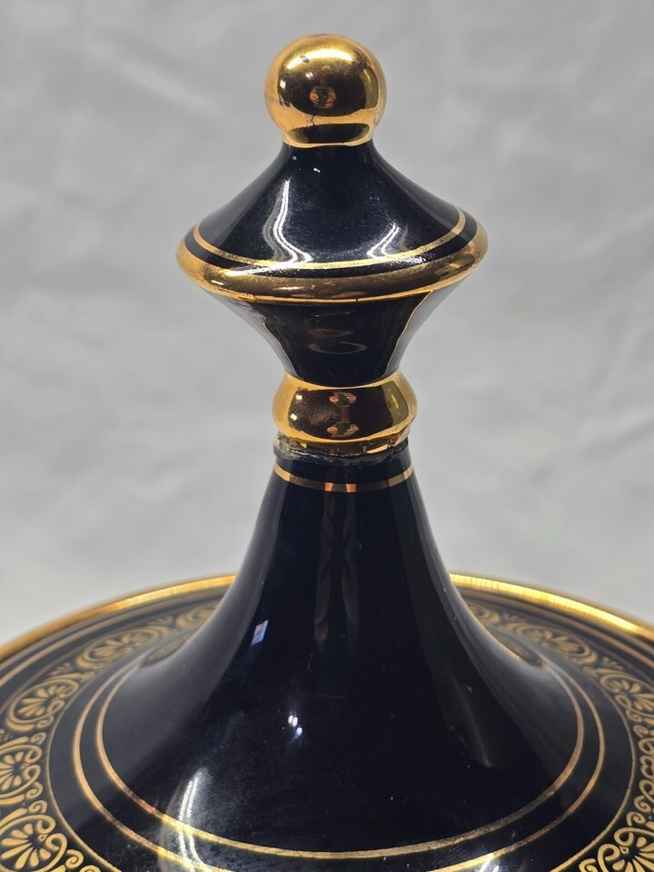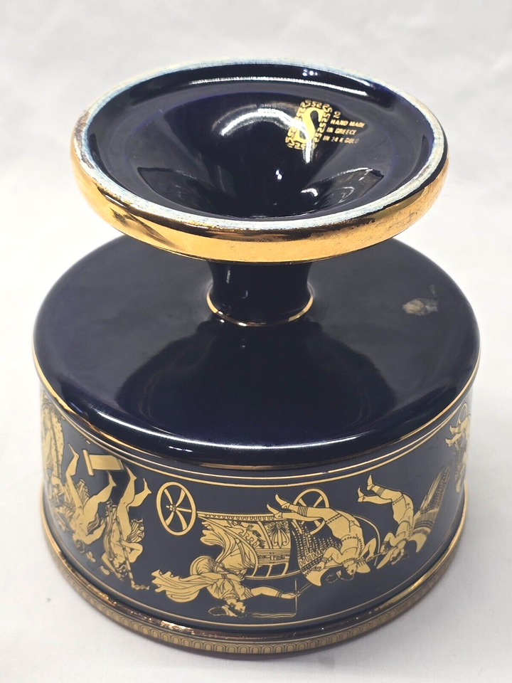 Vintage Greek Made Apothecary Dish Urn Compote 24k Gold Trim - HAS BEEN REPAIRED