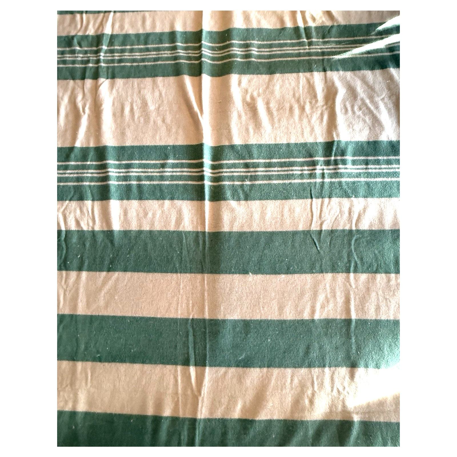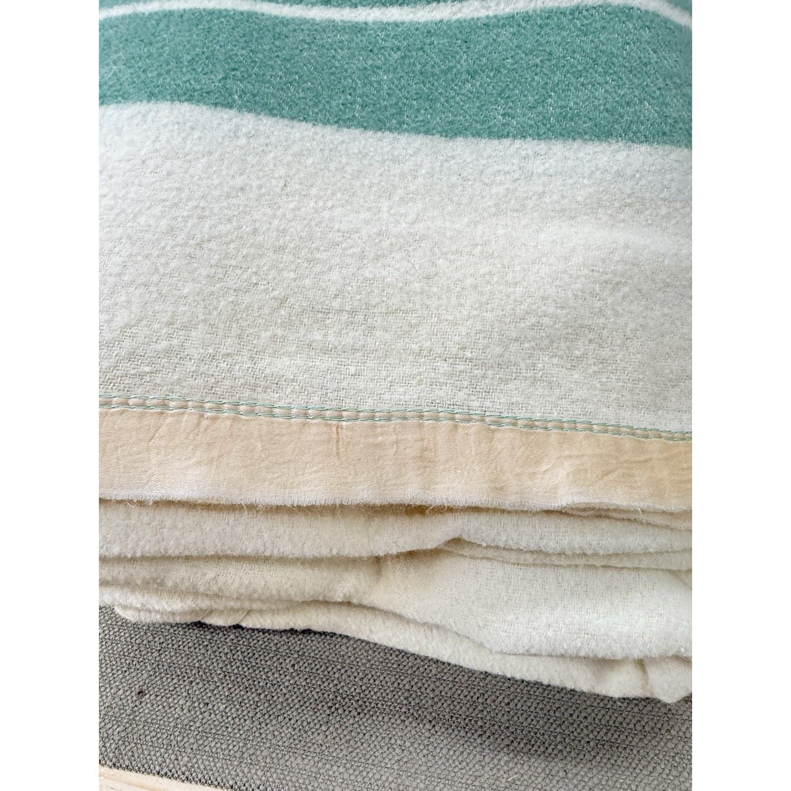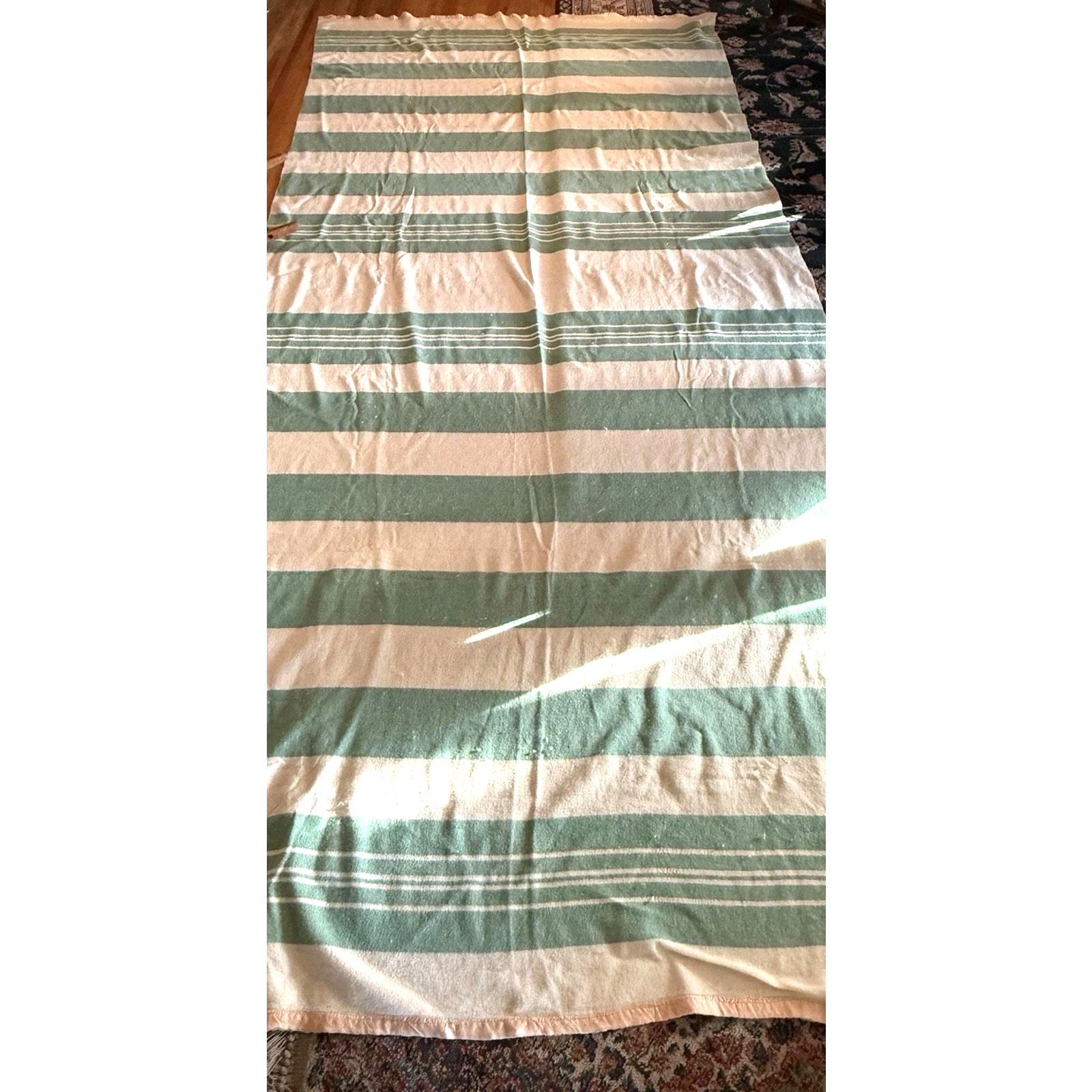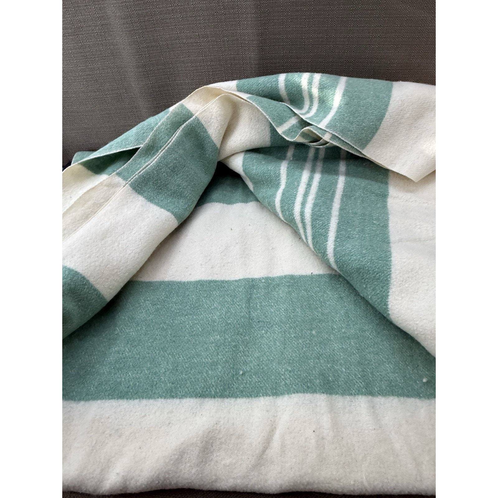 - Vintage Green Cream Wool Camp Blanket 144x64 Striped Extra Long Cabin Throw