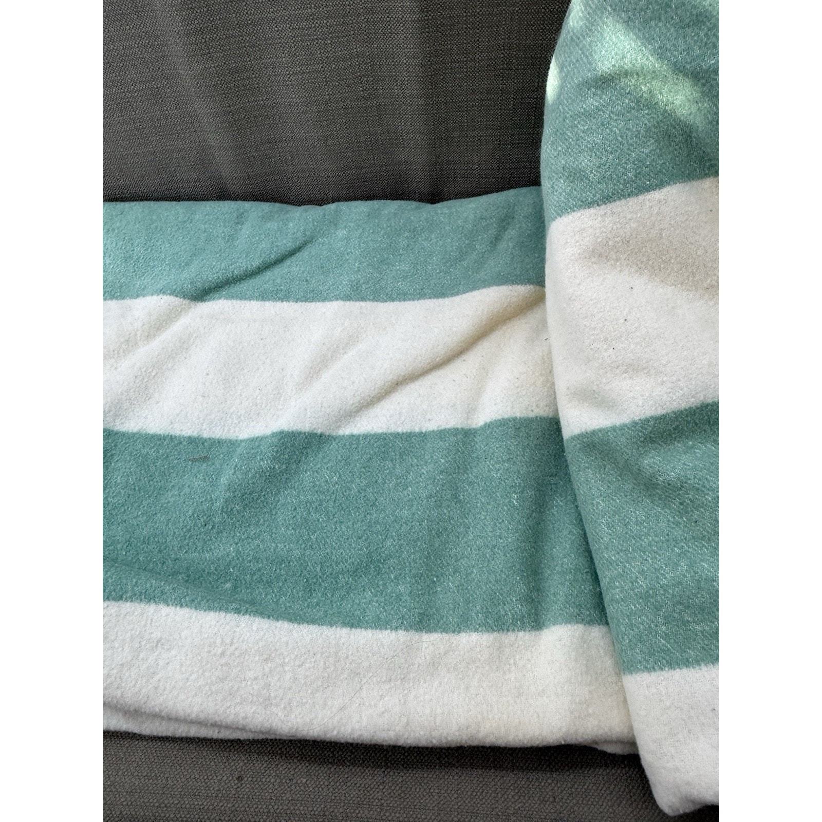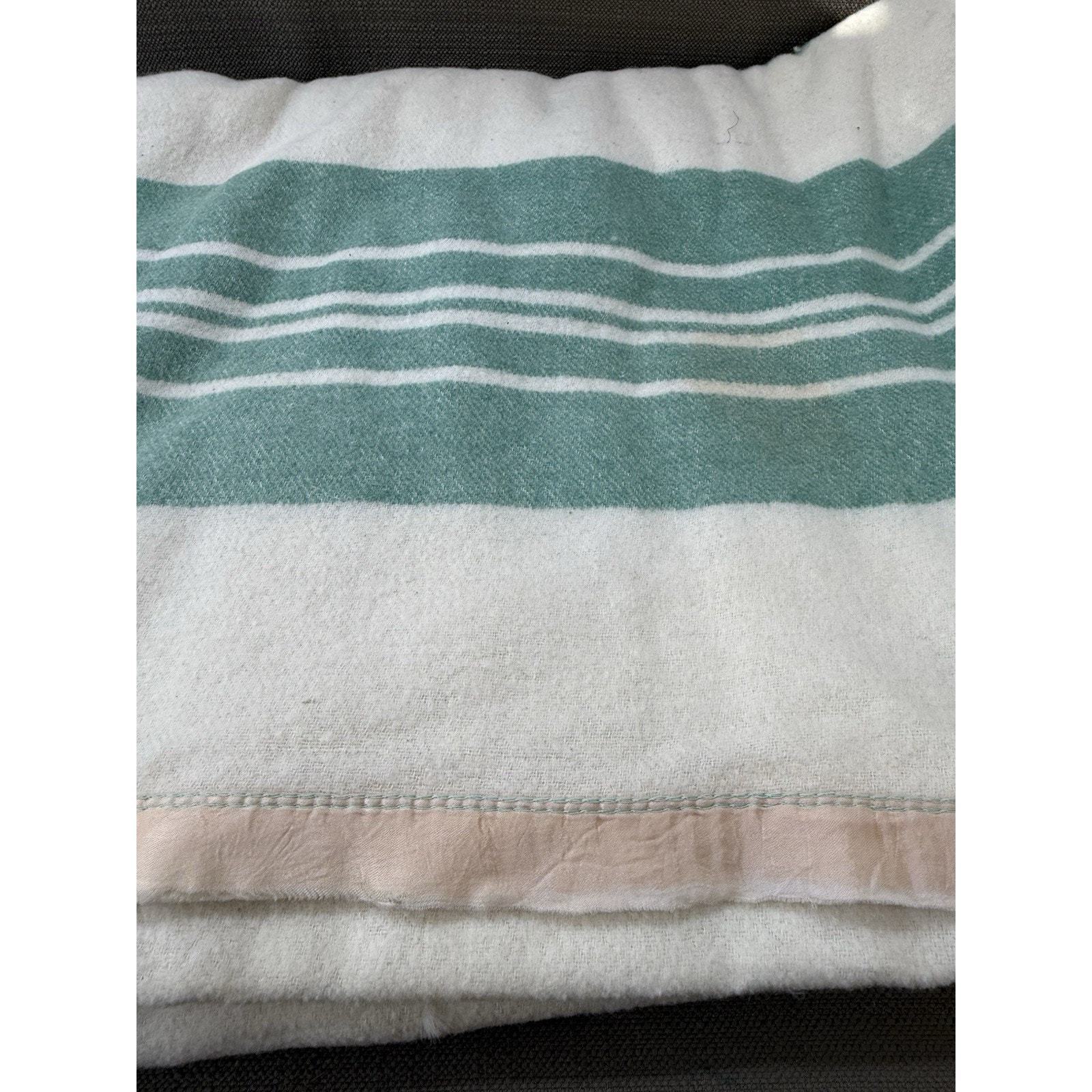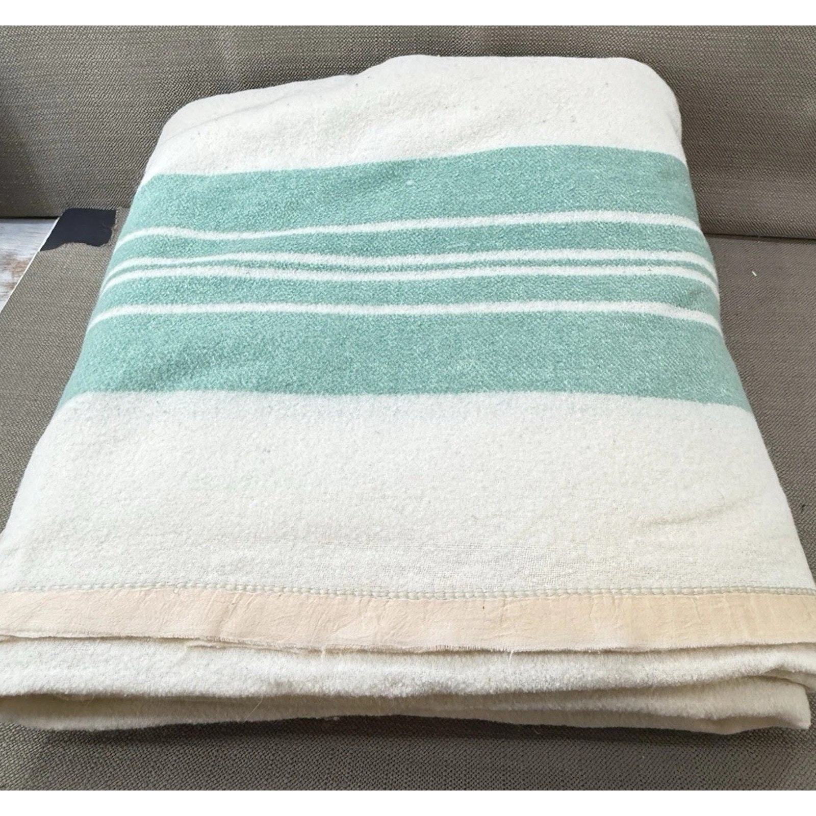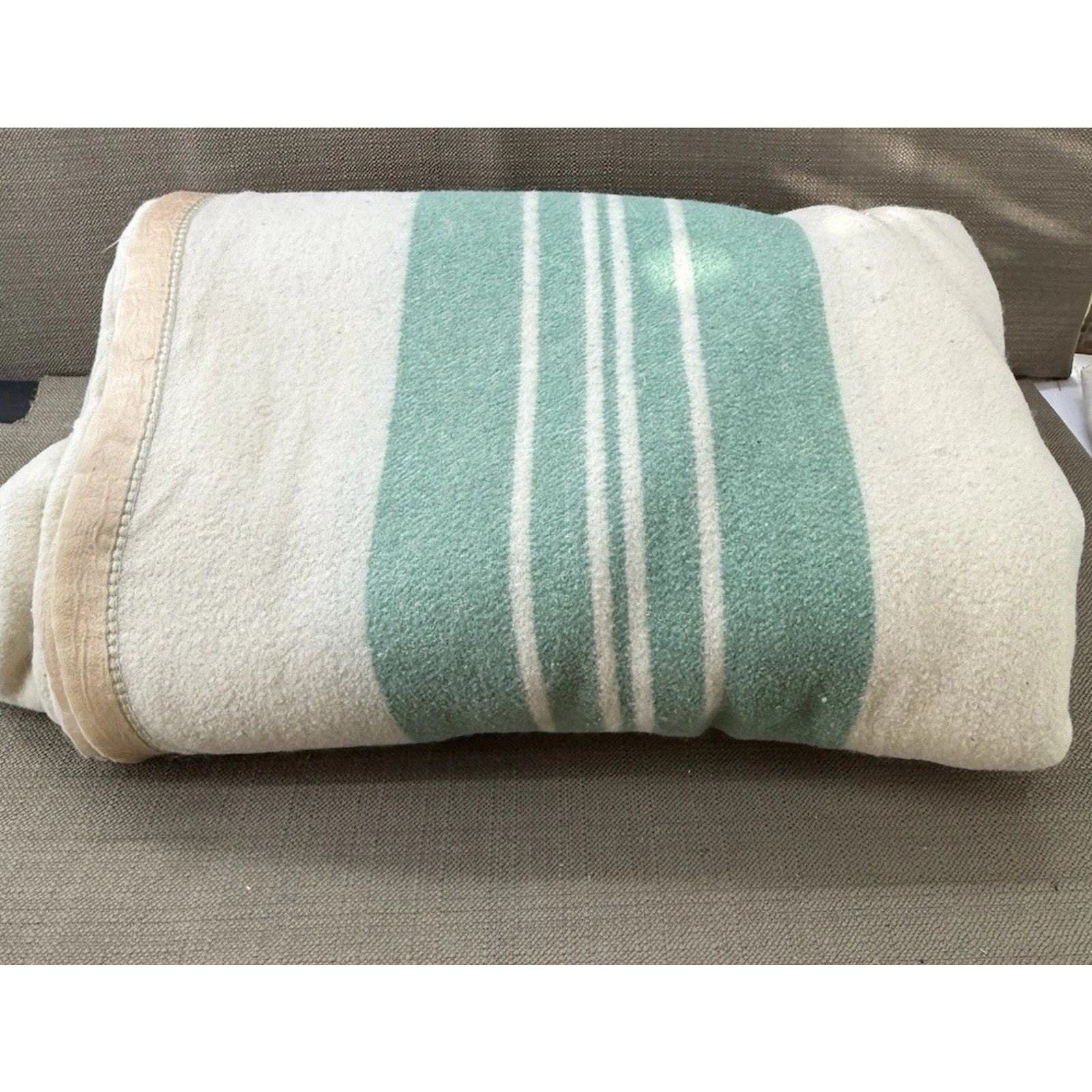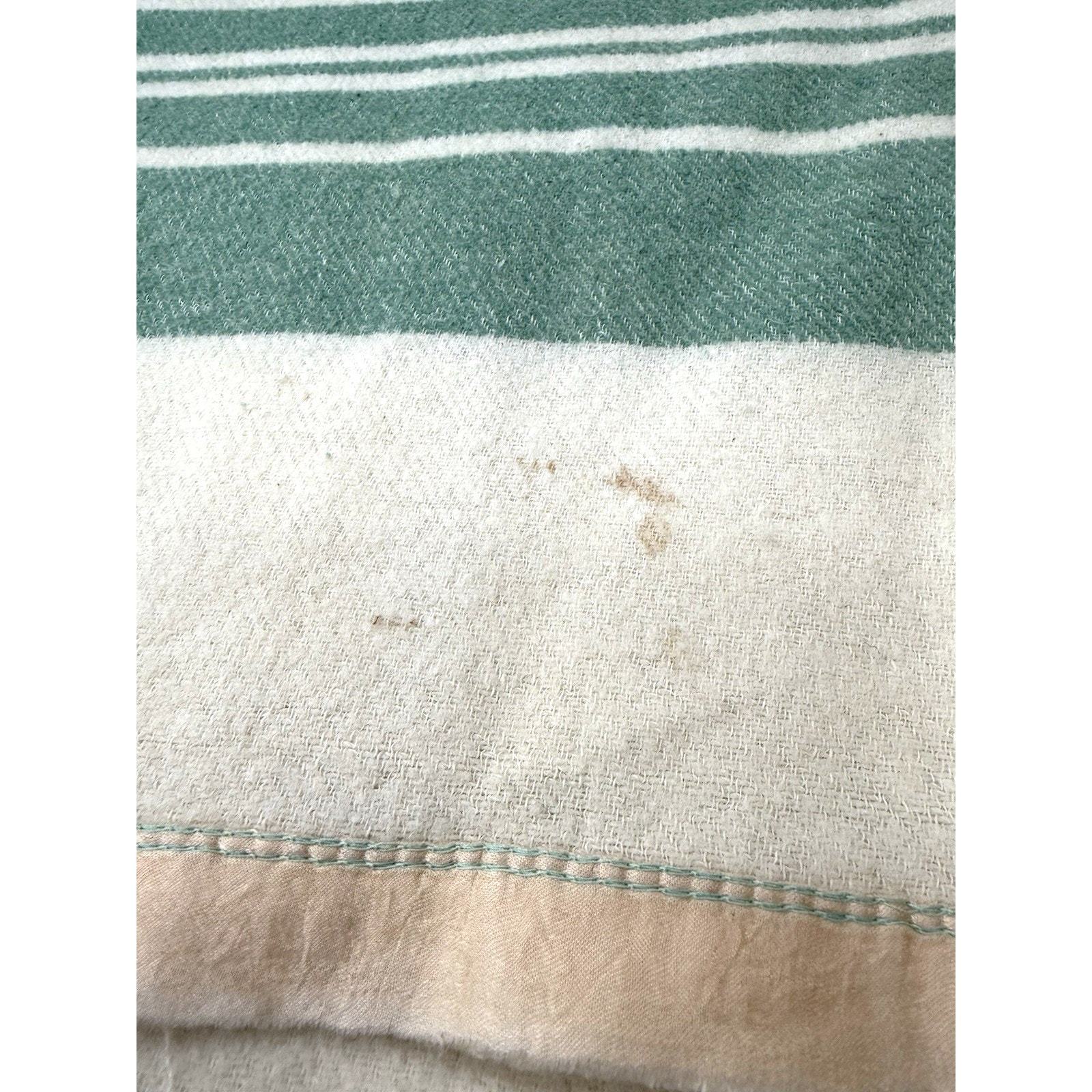 - Vintage Green Cream Wool Camp Blanket 144x64 Striped Extra Long Cabin Throw