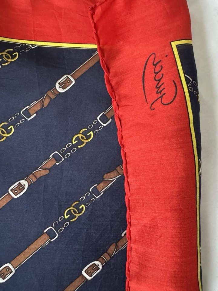Vintage Gucci Silk Scarf Red Blue GG Logo Hand rolled edge
