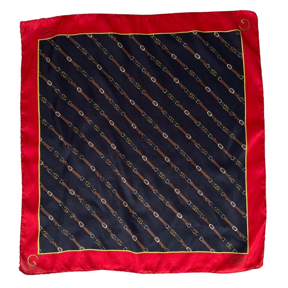 - Vintage Gucci Silk Scarf Red Blue GG Logo