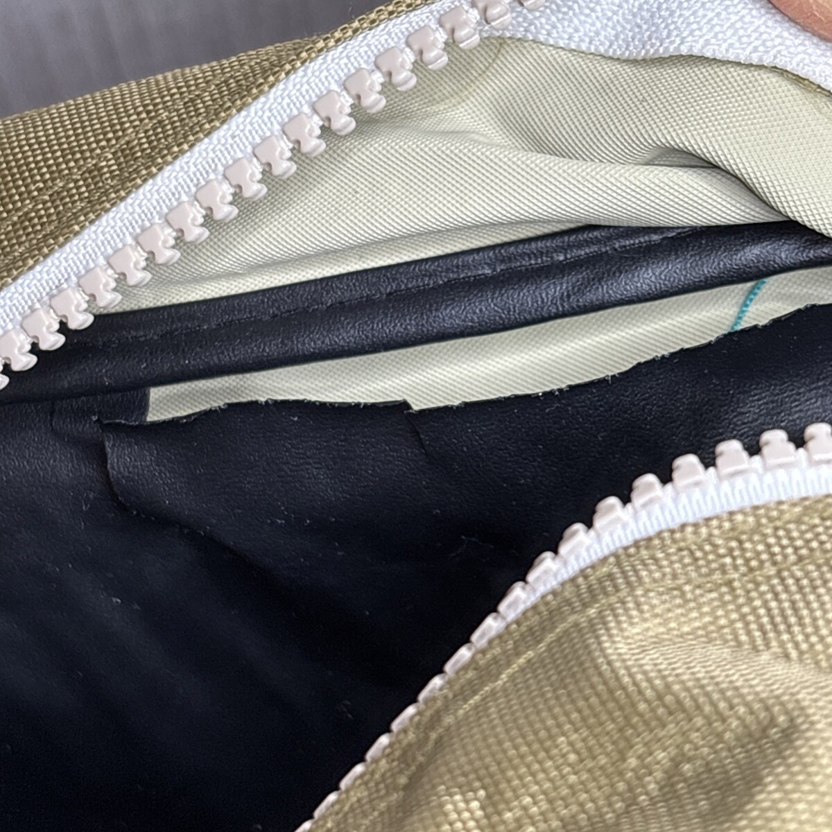 Outer shell appears to have minimal wear. Interior lining is not attached to the top near the top with a small tear. possibly a factory flaw and could be reattached with fabric adhesive. See photos.