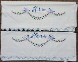 Vintage HIS HERS Pillow Case Cover SET of 2 Blue w/ Crochet Edge 28x20 Inch