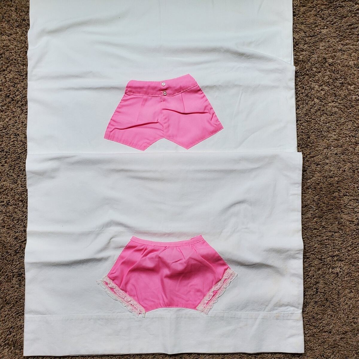- Vintage HIS HERS Pillow Case Cover SET of 2 Pink Bloomers 28x20 Inch