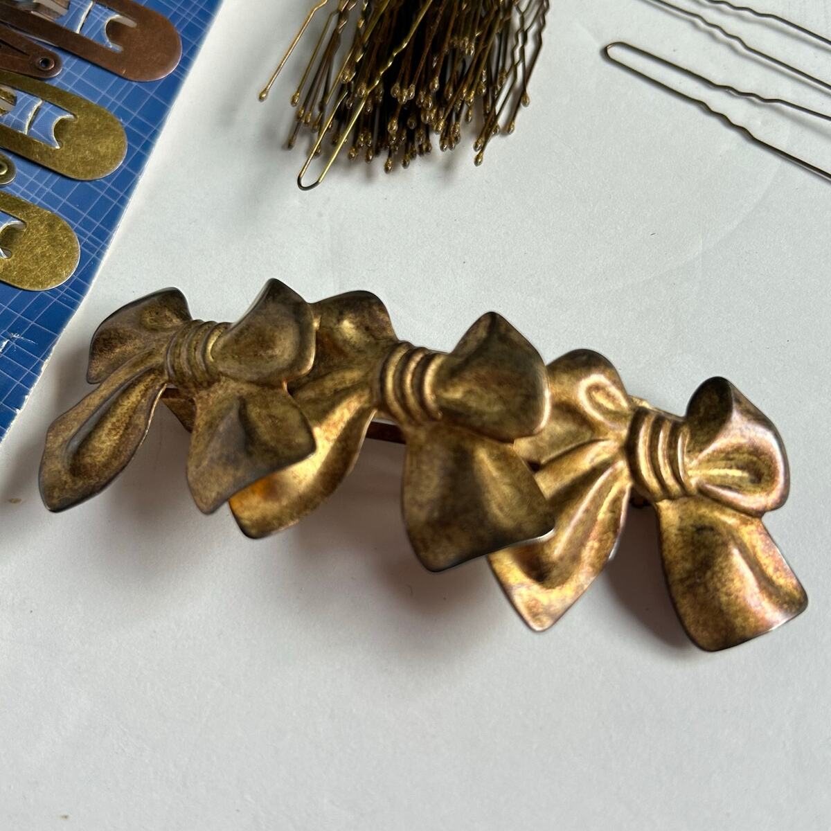 - Vintage Hair Accessory Lot – 80s Metal Bow Barrette + Goody Clips & Pins