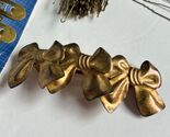 ? Metal Triple-Bow Barrette ? solid metal, gold-tone, approx. 3.5" wide, 1980s era. Strong clasp, minor patina from age.