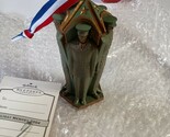 The Hallmark Ornament Military Salute Those Who Serve Christmas Dated 2004 Vintage is a green plastic ornament with an irregular shape, featuring a military theme. Handmade in 2004, this original Hallmark ornament includes a hanging feature and is part of a collection of ornaments. This vintage piece is perfect for collectors or those looking to add a military-inspired touch to their holiday decor, making it a unique and special addition to any Christmas tree. Light wear.