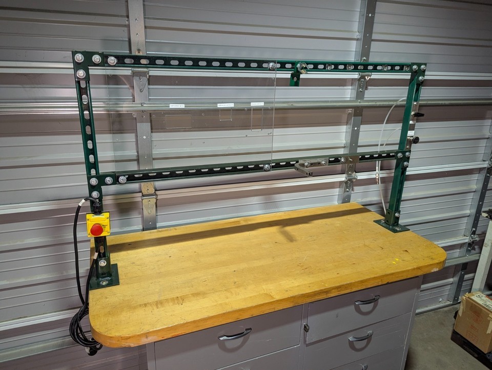 This Vintage Hamilton Industrial Workbench came from a local lab that had surplus equipment and was in use prior to removal. The previous owner had various instruments (gauges, PID controllers, valves) mounted to the acrylic glass. There are a few components still attached that can be removed upon request. Please view all photos as they show overall condition, included accessories and useful information. Listing only includes what is shown in photos. We will be happy to provide additional information as well as photos so please feel free to contact us with any questions.