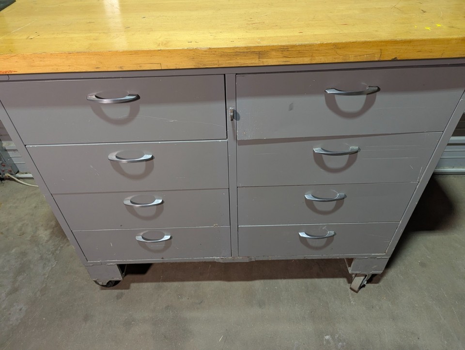 - Vintage Hamilton Industrial Workbench / 72" Hardwood Top / Steel 8 Drawer Base