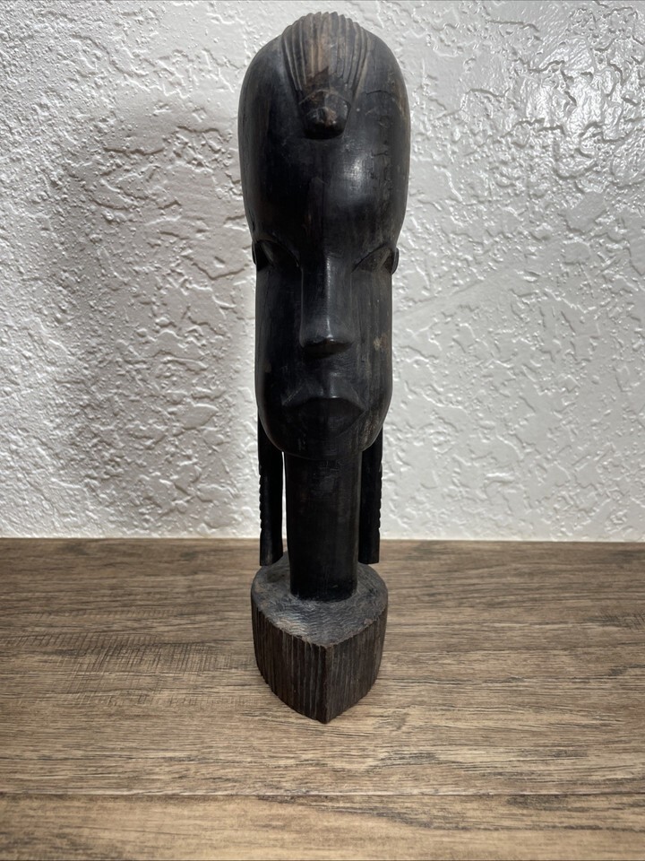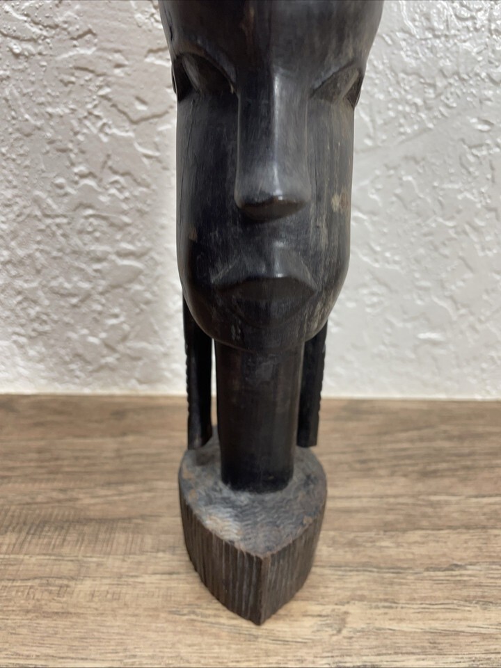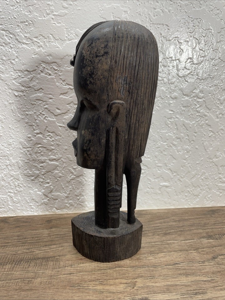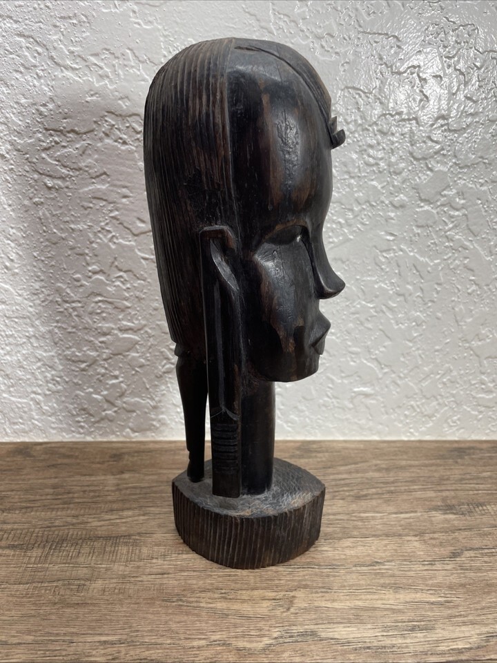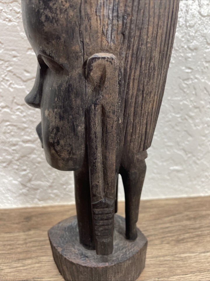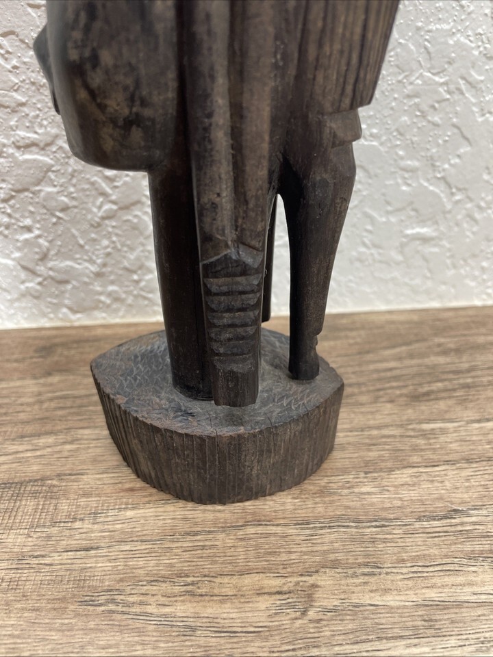 - Vintage Hand Carved African Warrior Maasai Man Statute Figurine KG