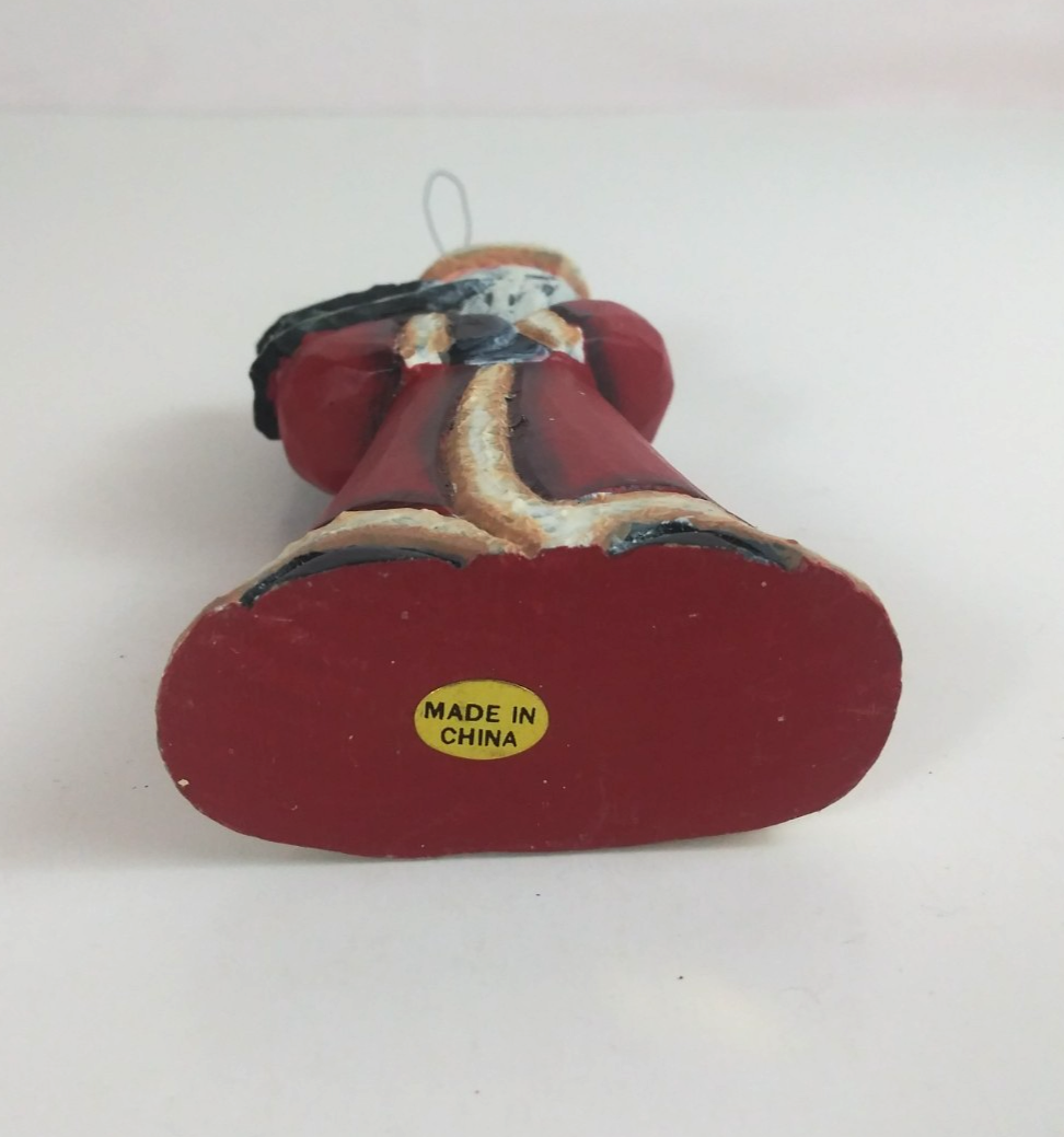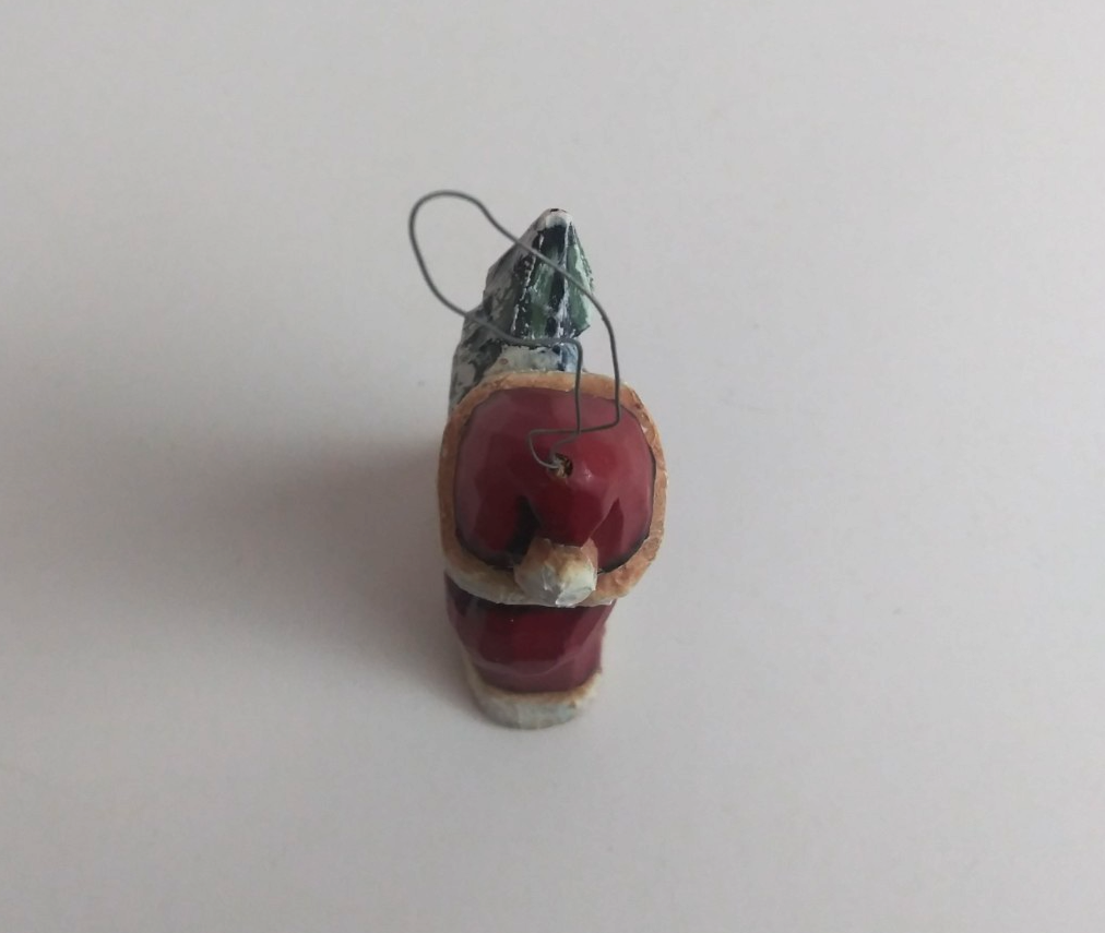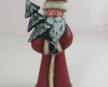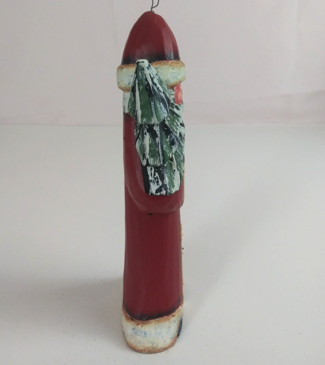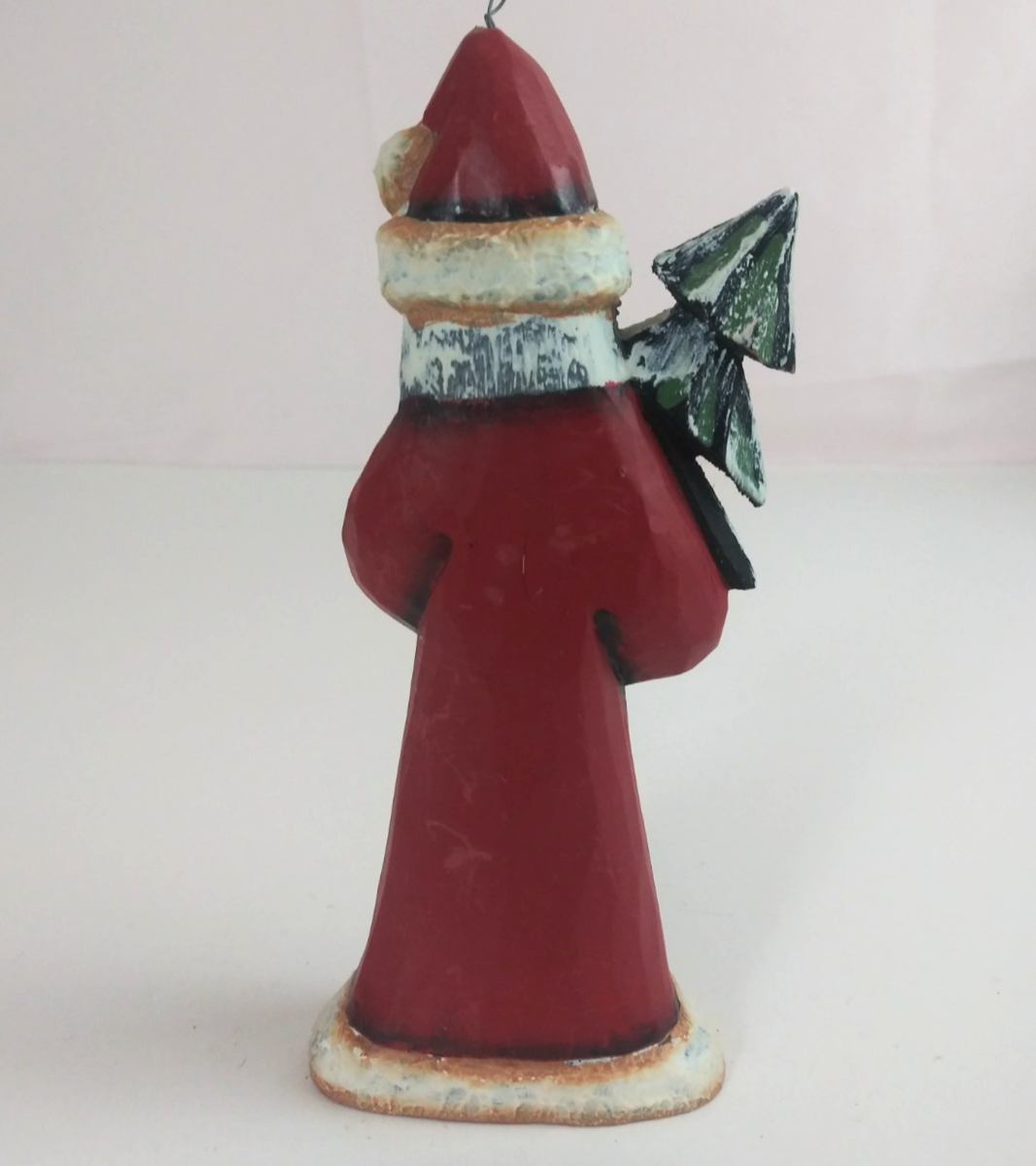 - Vintage Hand Carved & Painted Wooden Santa Claus Holding Tree Christmas Ornament