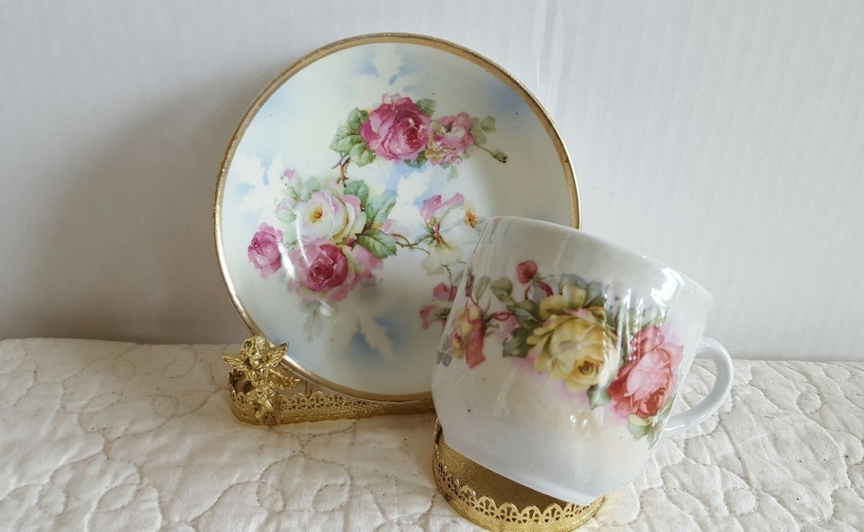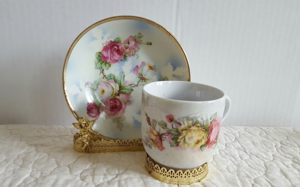 - Vintage Hand Painted Tea Cup And Saucer Japan Gift for Mother EUC Ship Fast