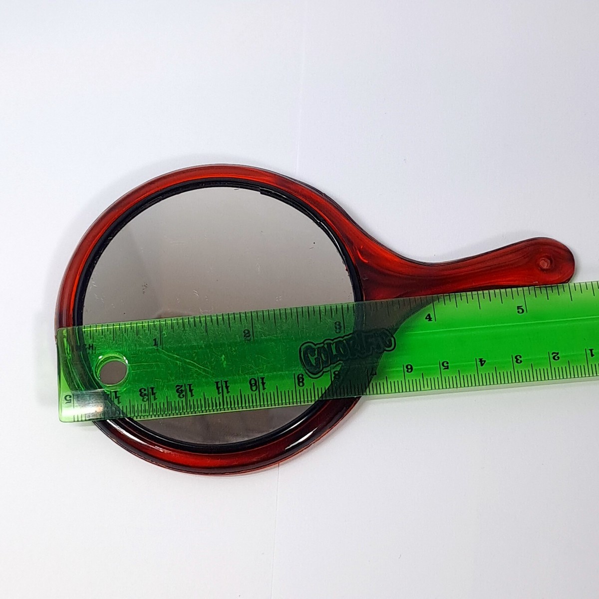 - Vintage Hand Purse Mirror w/ handle Japan Celluloid faux Tortoiseshell brown