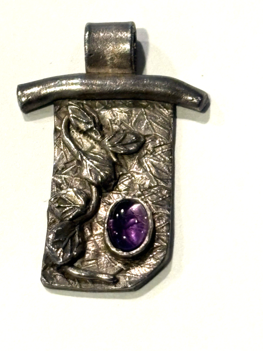 Vintage Handcrafted Floral Pendant with Amethyst Stone