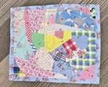 Vintage Handmade Doll Teddybear Patchwork Quilt Florals Cowboys Elephants More it measures 22 x 19 In good shape no holes but it does have a few faint stains, but the old fabrics are amazing