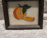 Vintage Handmade Embroidered Orange Fruit Wall Art Frame Textile Kneedlwork