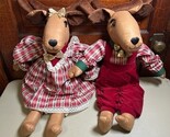 Vintage Handmade Plush Reindeer Boy And Girl Christmas Holiday Festive