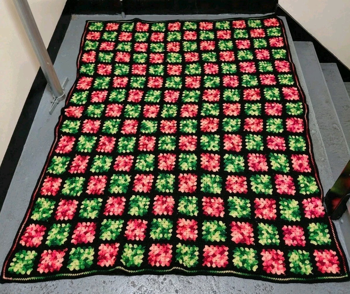 - Vintage Handmade Red Green Granny Square Afghan 58"x77" Crotchet Quilt Throw