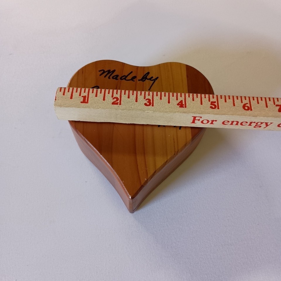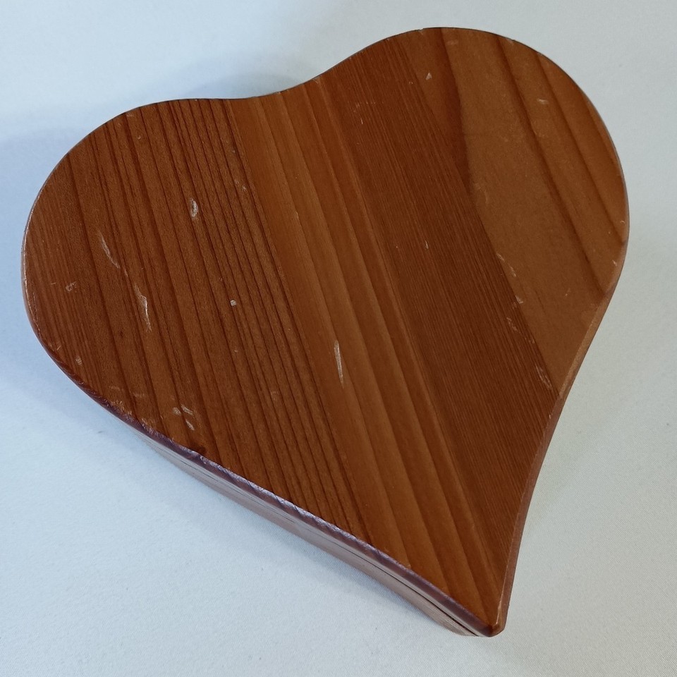 - Vintage Handmade Wooden Pivot Lid Heart Shaped Trinket Box 5” Signed 1991