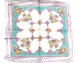 - Vintage Hanky Handkerchief Basket Flowers Purples Crochets Edges NWT 1940s
