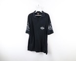 Vintage Harley Davidson Mens Large Faded Spell Out Fire Flames Polo Shirt Black