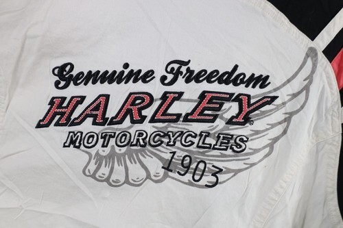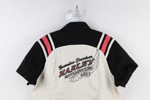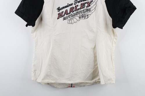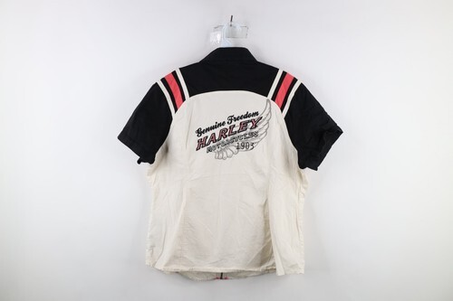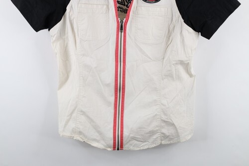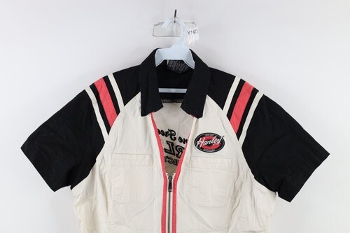 - Vintage Harley Davidson Womens XL Spell Out Striped Full Zip Mechanic Shirt