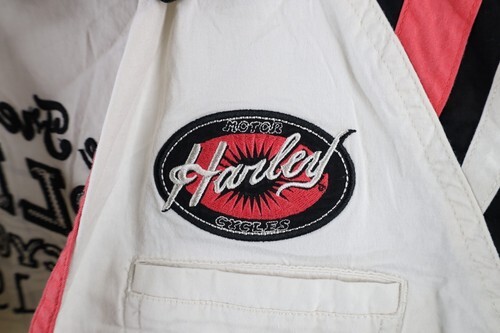 Vintage Harley Davidson Womens XL Spell Out Striped Full Zip Mechanic Shirt