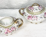 - Vintage Haviland Limoges Pink Floral Cream Sugar Lots of Gold Laurel Band