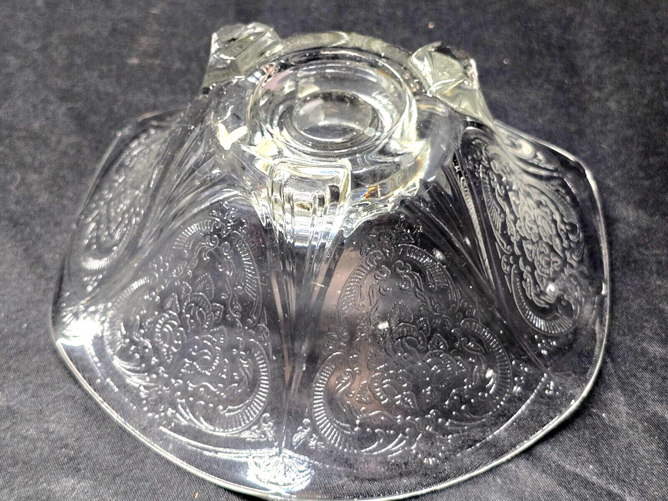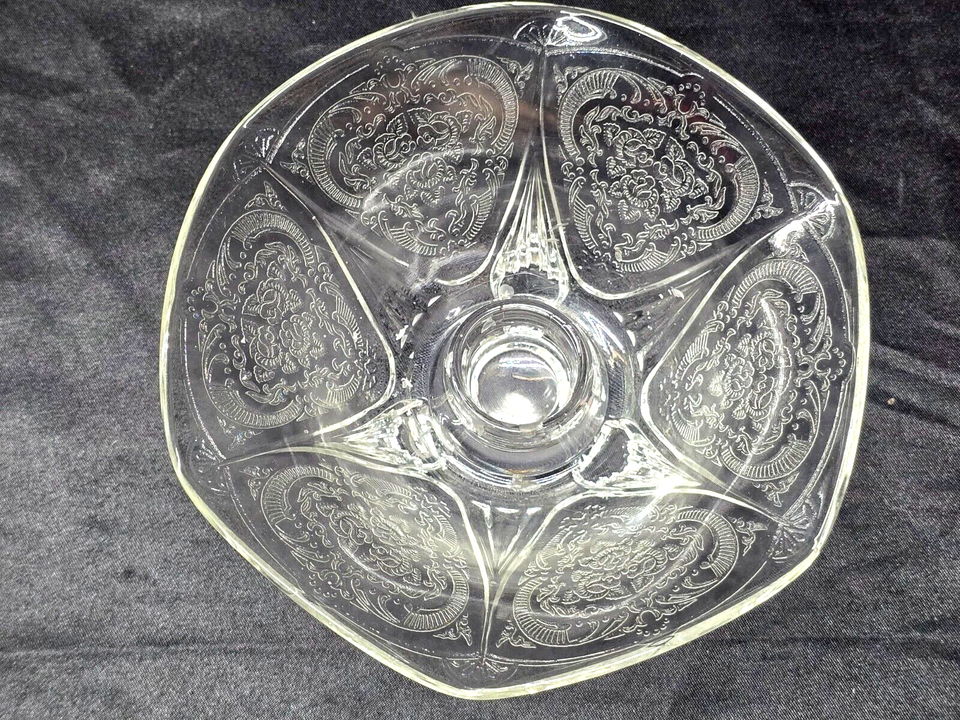1930s Royal Lace depression glass candle holder by Hazel Atlas. Piece is in