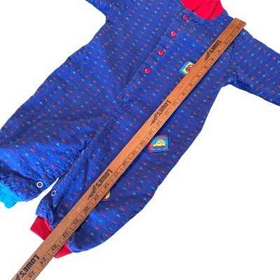 - Vintage Health-tex Baby Boys Girls 18 Months Blue Car Print Pajamas Sleepsuit