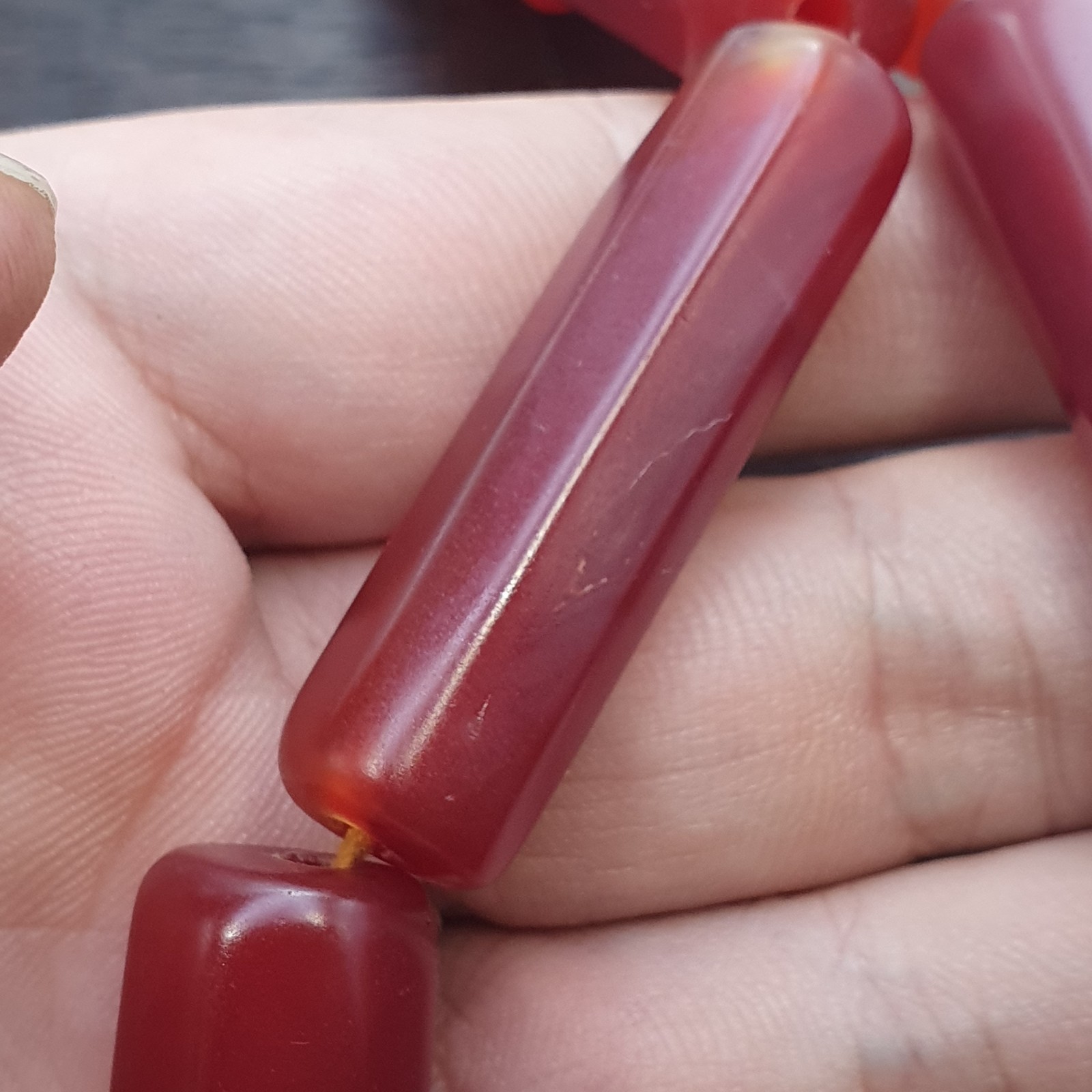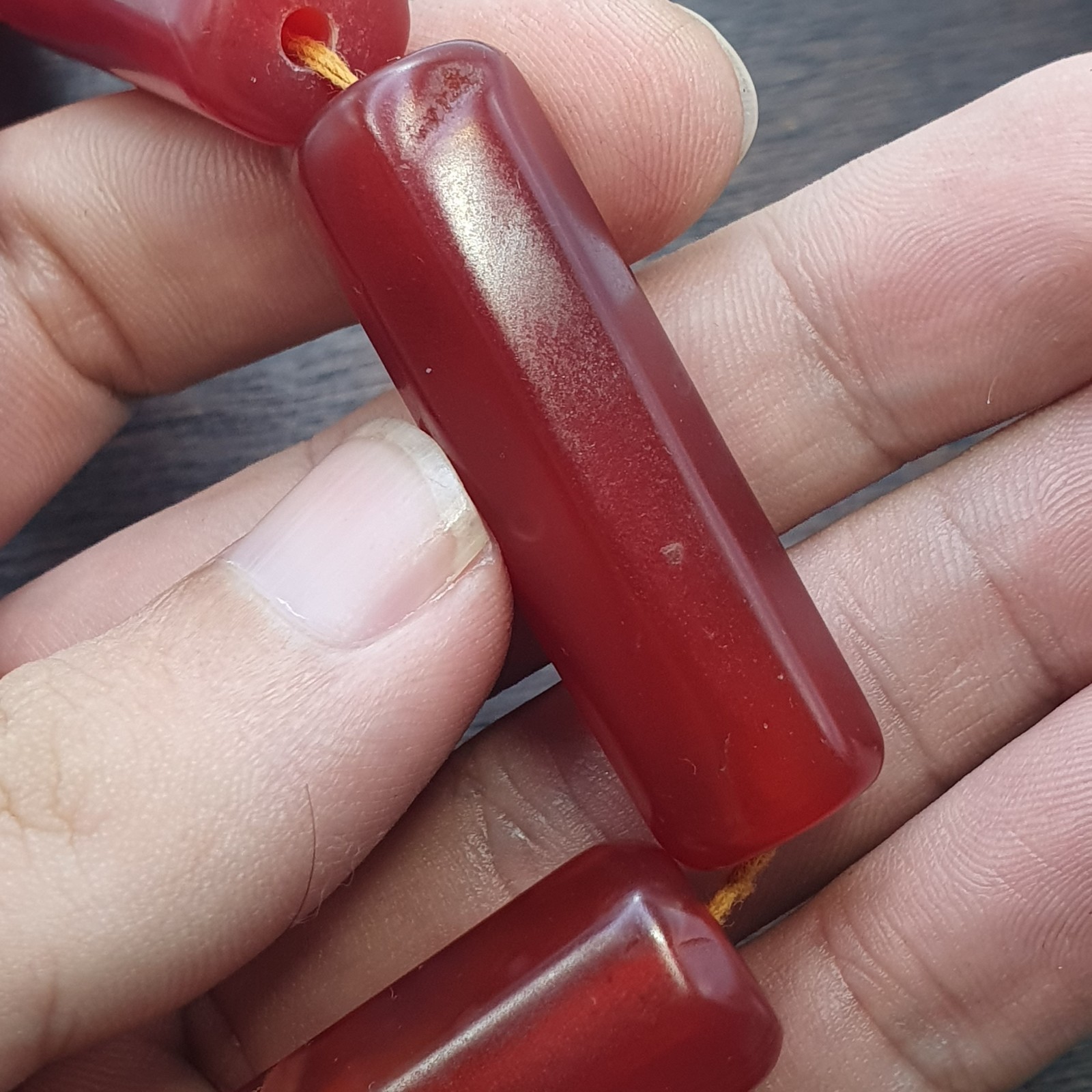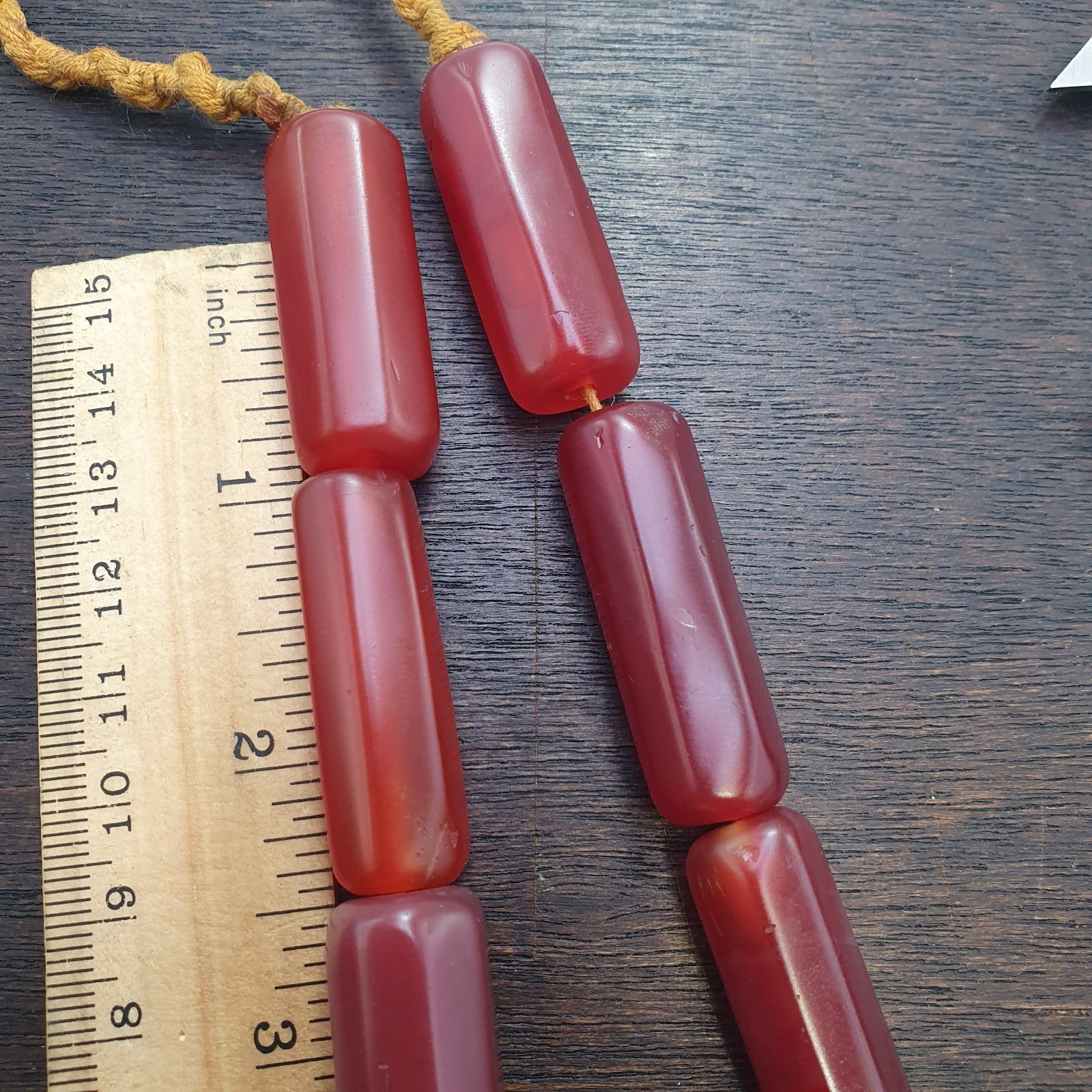 - Vintage Himalayan Huge Tube Red Agate Beads Necklace