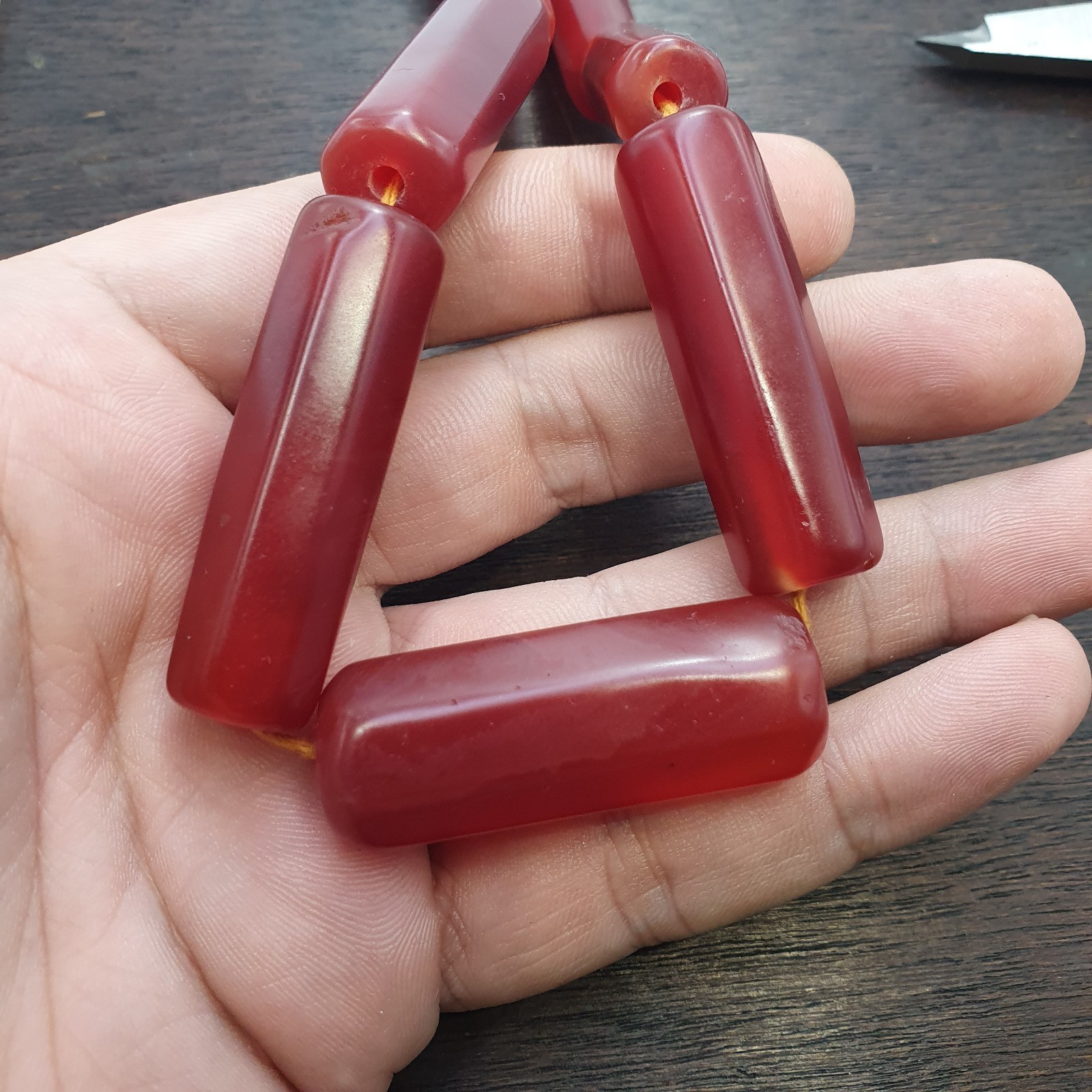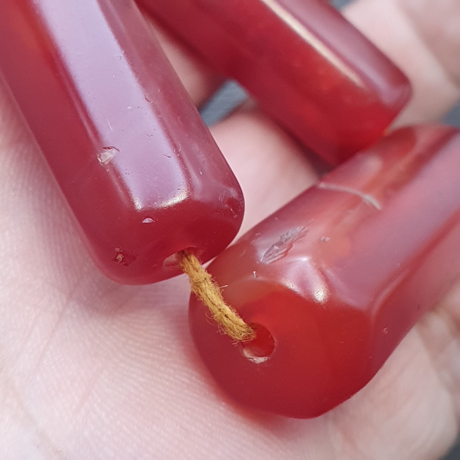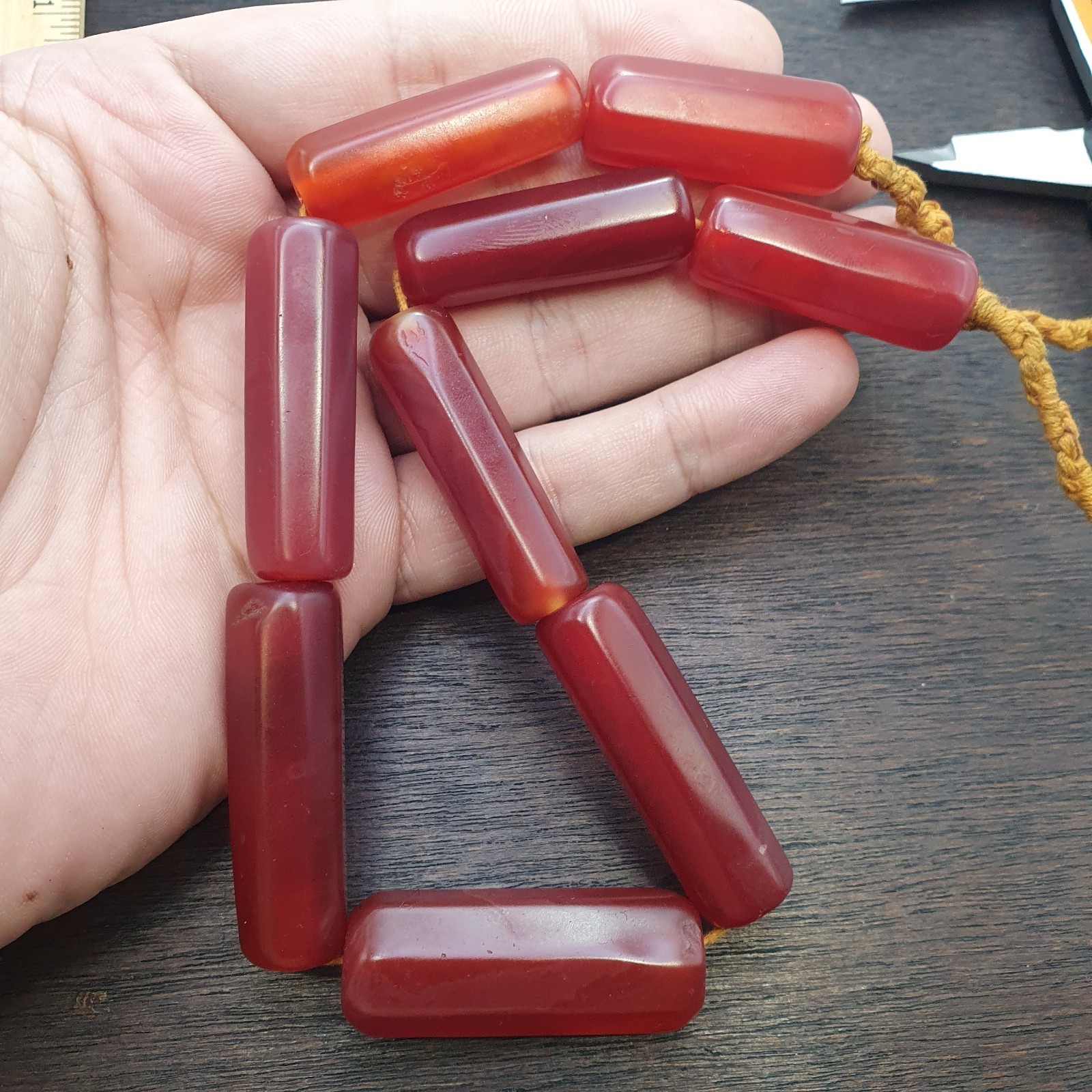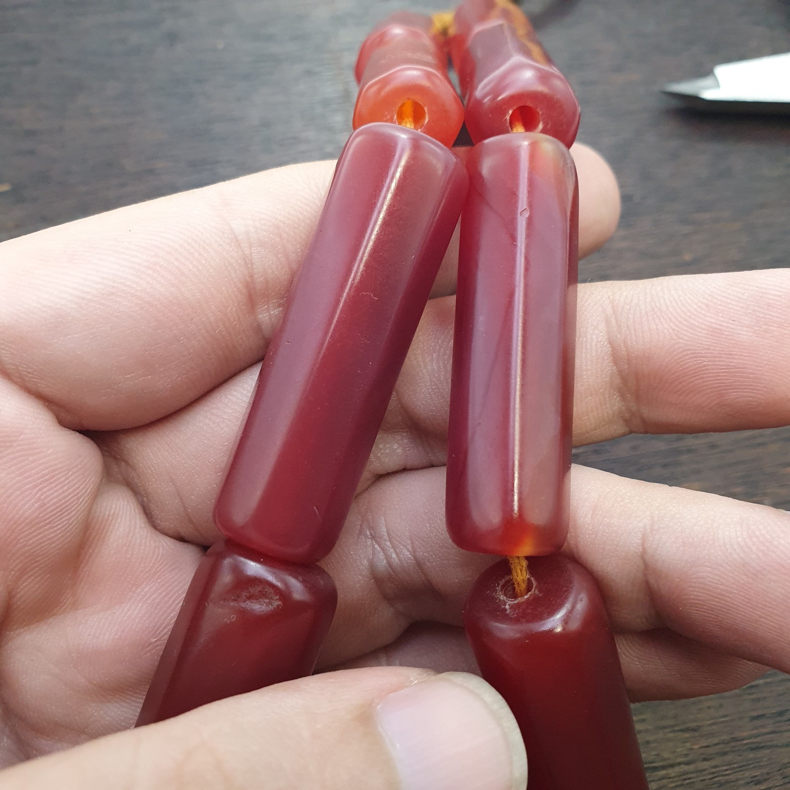 - Vintage Himalayan Huge Tube Red Agate Beads Necklace
