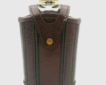 - Vintage Hip Flask Glass With Faux Leather Case Gold Chrome 7.5"