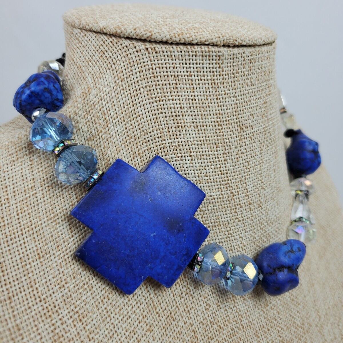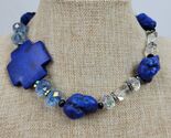 - Vintage Hippie Blue & Clear Beaded Choker Necklace 16 Inch
