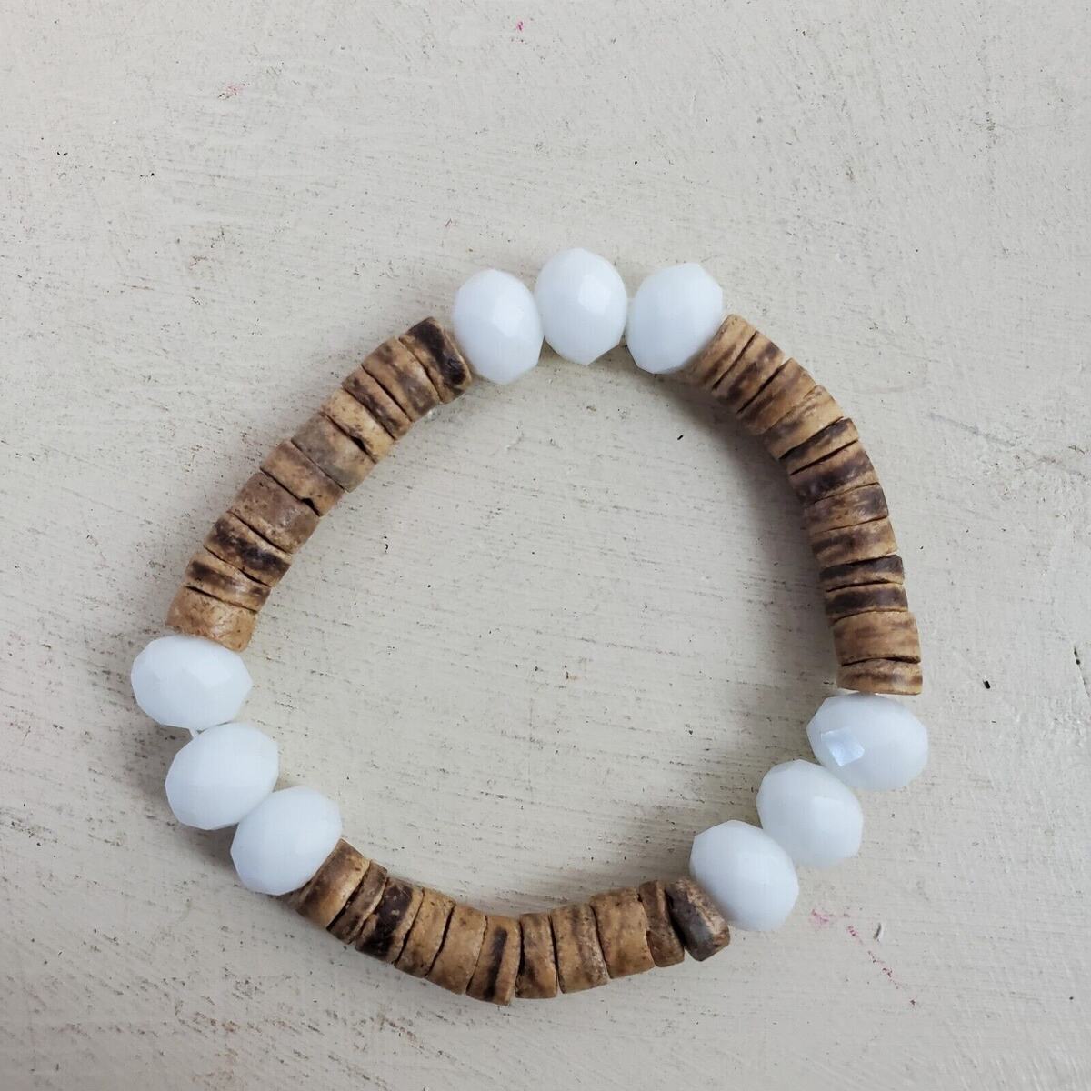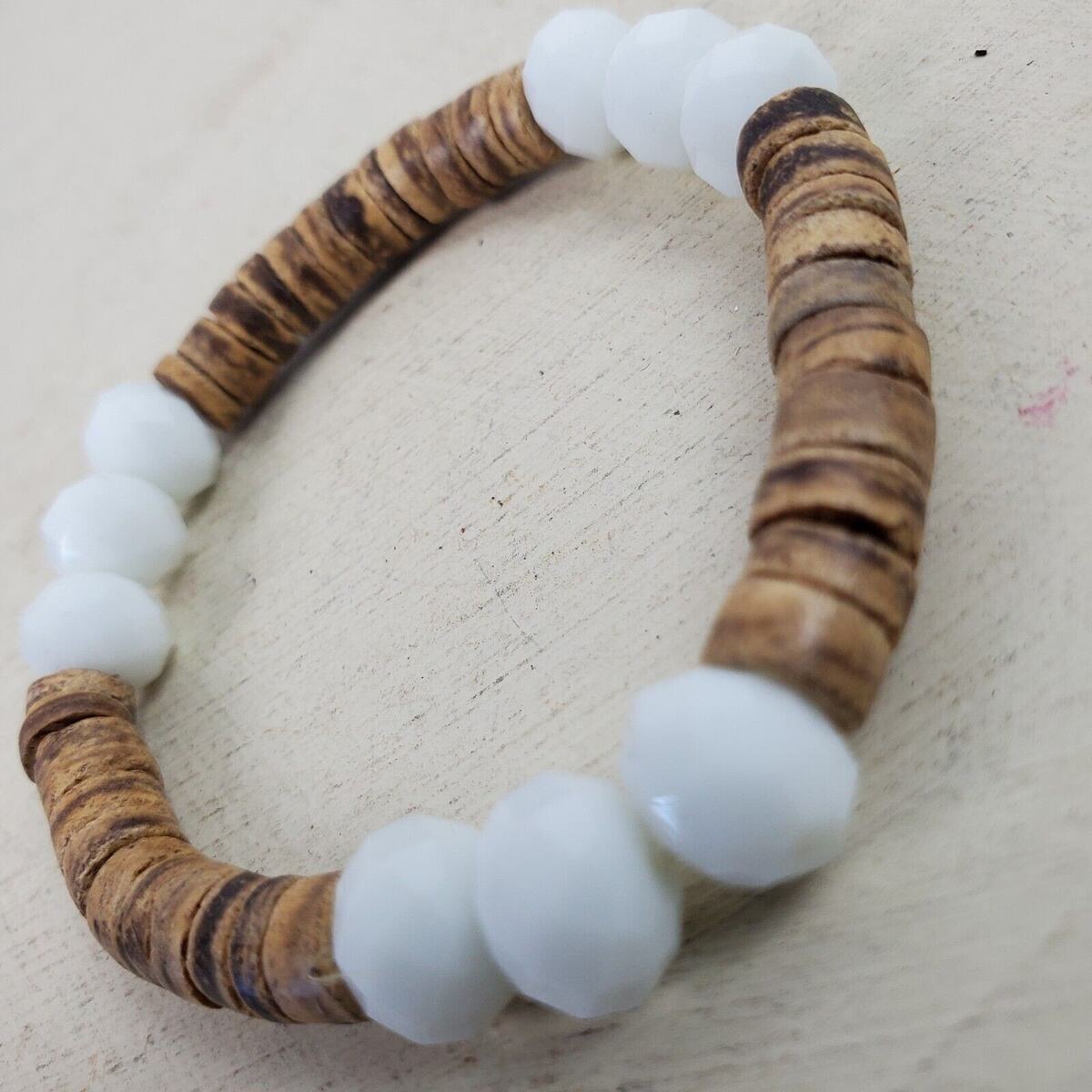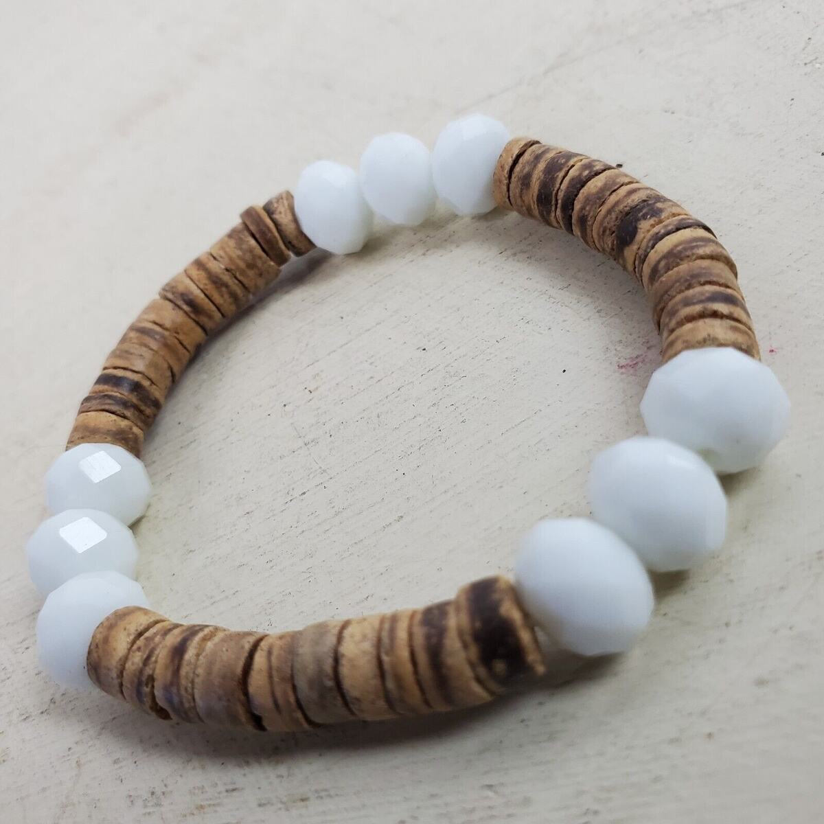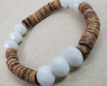 - Vintage Hippie Style Earthy w/ Brown White Beads Stretchy STATEMENT Bracelet