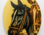 - Vintage Horse Portrait Pin Two Horses Oval Plastic Brooch Equestrian Animal
