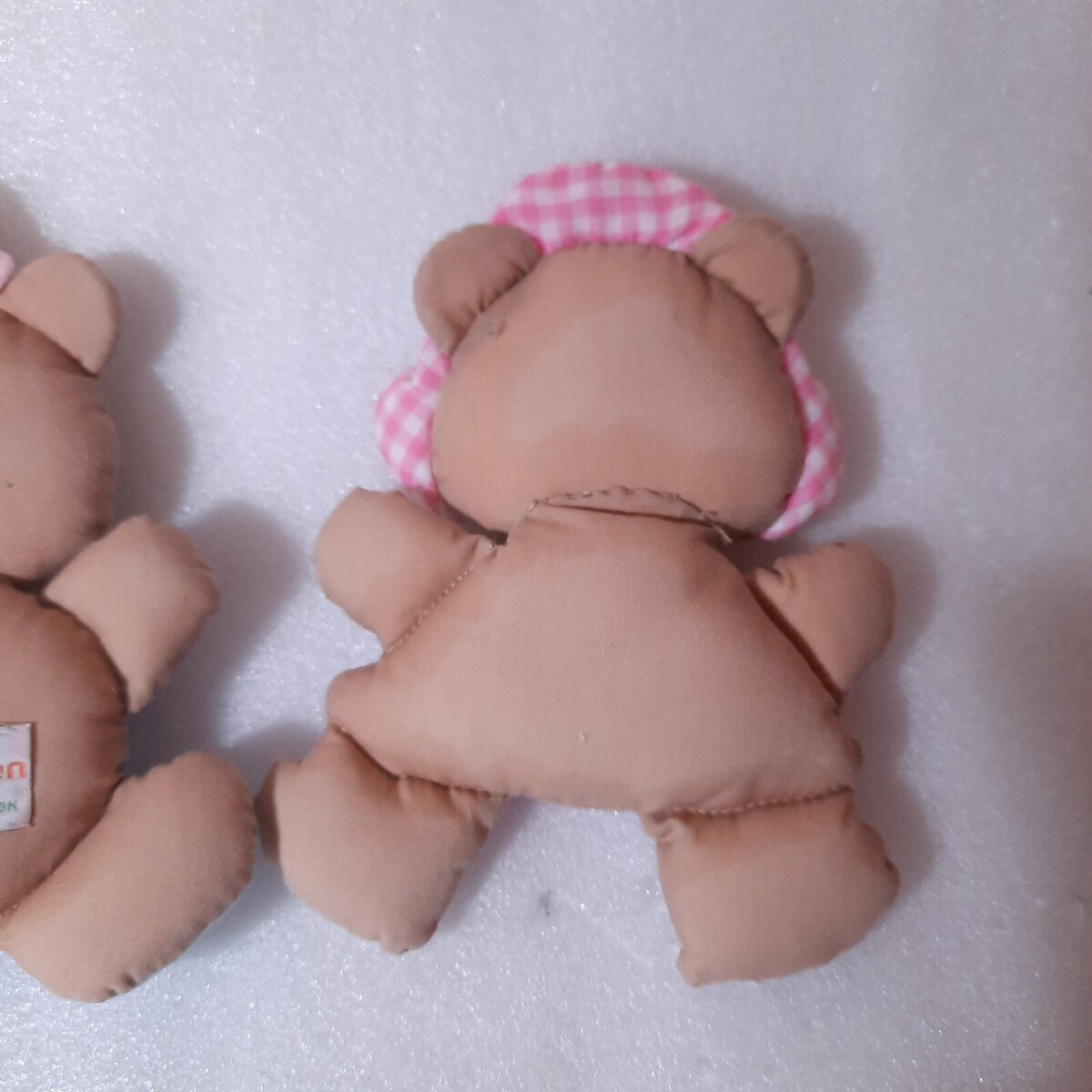 - Vintage House of Hatten baby bear plush set 2 boy girl pink blue gingham toy