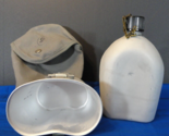 VINTAGE NORWEGIAN NORWAY MILITARY ALUMINUM CANTEEN, CUP, GRAY CANTEEN POUCH
