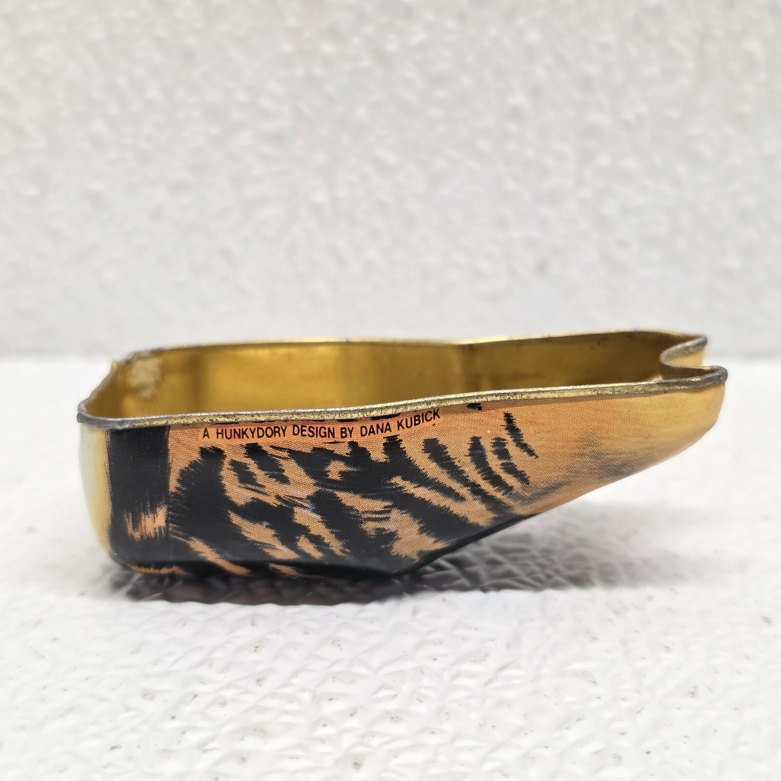 Vintage Hunky Dory Design Dana Kubick Trinket Box Tinware Stripe Tabby Cat Orange Black 2.5". Images show actual item that will ship.