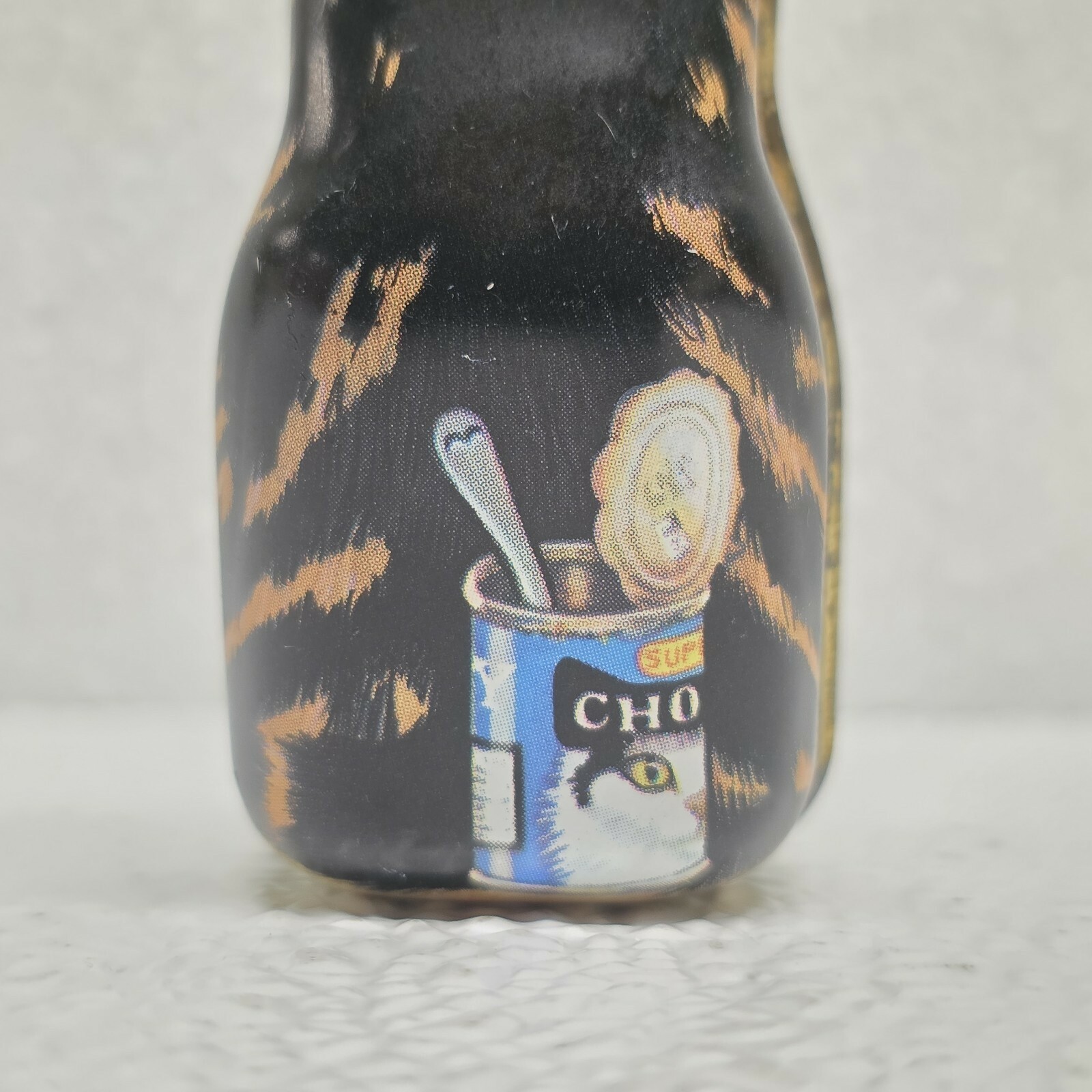 Vintage Hunky Dory Design Dana Kubick Trinket Box Tinware Stripe Tabby Cat 2.5"
