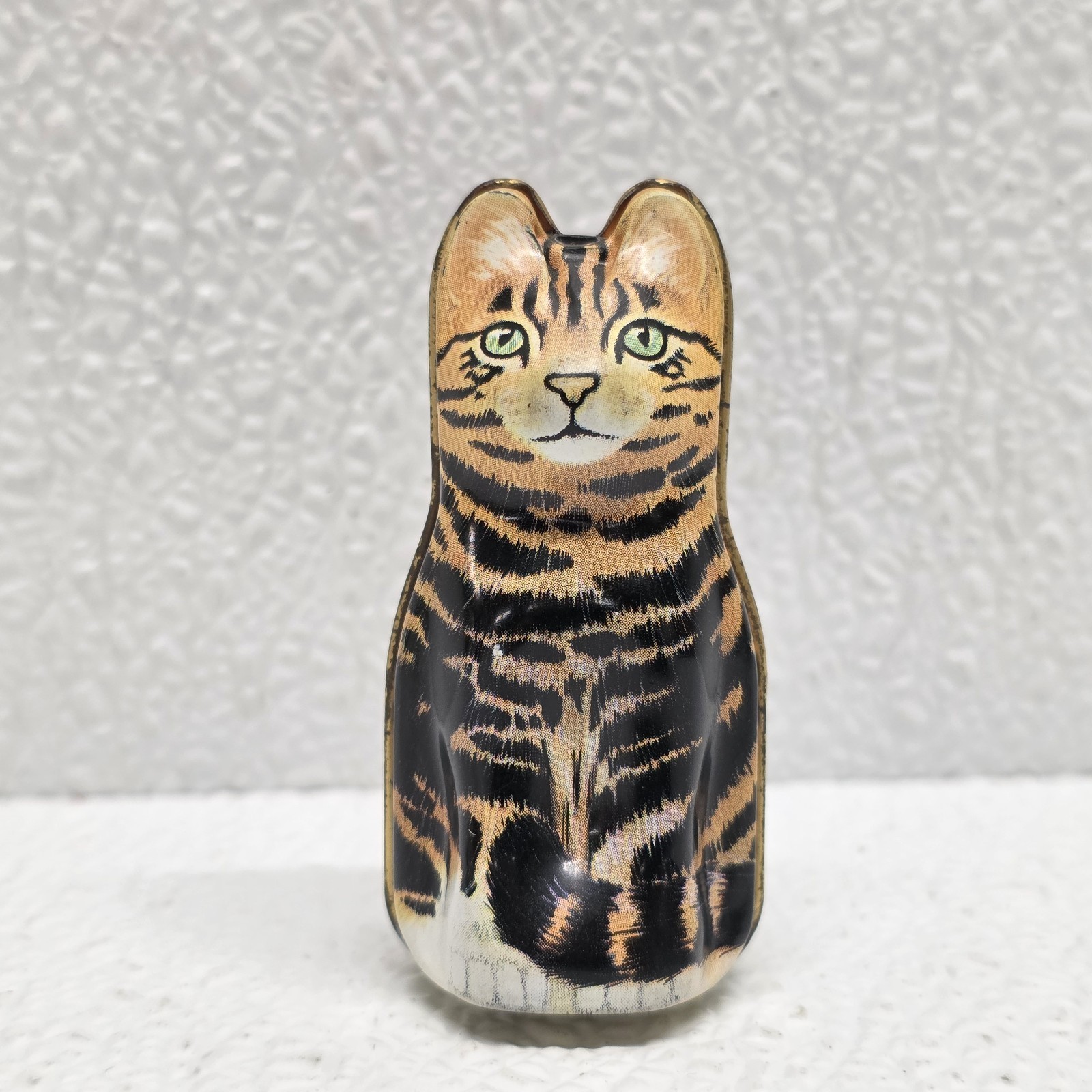 - Vintage Hunky Dory Design Dana Kubick Trinket Box Tinware Stripe Tabby Cat 2.5"