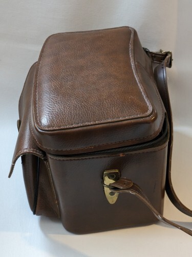 Vintage IN Pelle Fotocamera BAG Custodia Marrone Ottone Cinturino Tasca USA 703