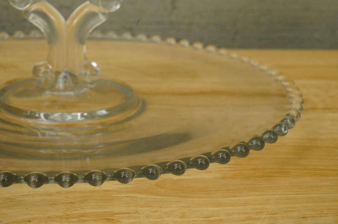 - Vintage Imperial Glass Beaded Edge Candlewick Pastry Tray Center Stem 3400