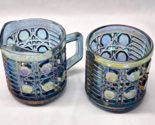 Vintage INDIANA GLASS Creamer & Open Sugar Bowl WINDSOR BLUE Carnival Glass
