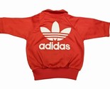 This is an absolutely adorable infant Adidas trey foil full zip hoodie. Size 6 months. Bright orange with white accents. The back of the hoodie has the large trefoil sign This hoodie is in EXCELLENT CONDITION.